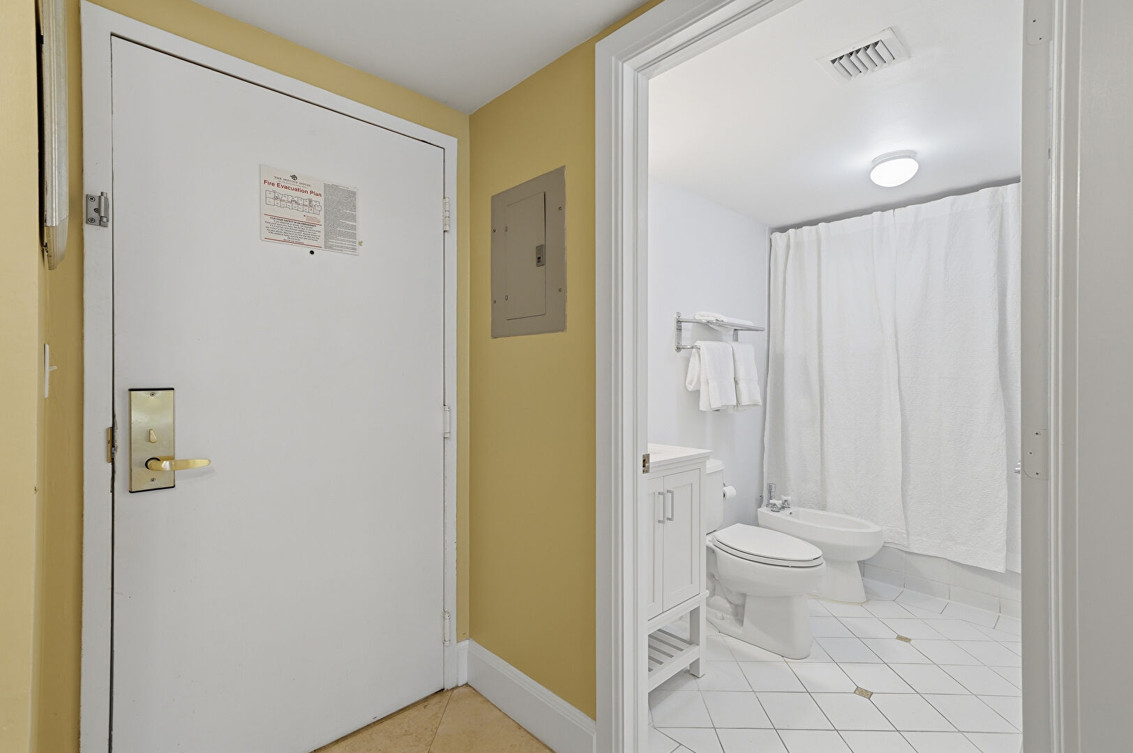 Baseboards Wall, Bidet, Drywall, Electric Panel, Full Bathroom, Tile Floor, Vent