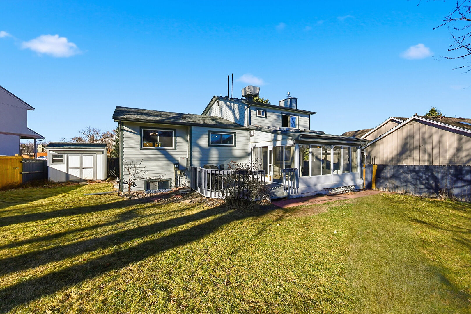 Deck, Fence, Gutters, Horizontal Siding, Lawn, Outdoor Structure, Residential View, Shed, Sunroom, Downspout, Fence