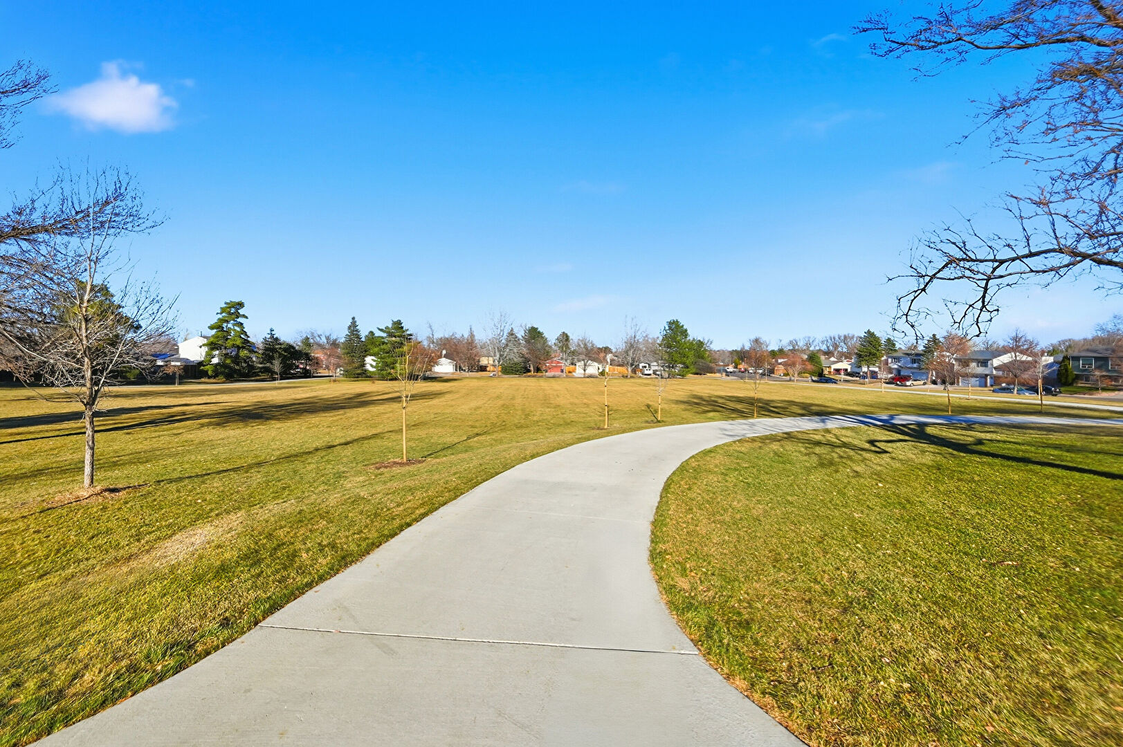 Brick Siding, Built In Garage, Concrete Foundation, Downspout, Driveway, Fence, Gutters, Horizontal Siding, Lawn, Porch, Stoop, Horizontal Siding, Lawn