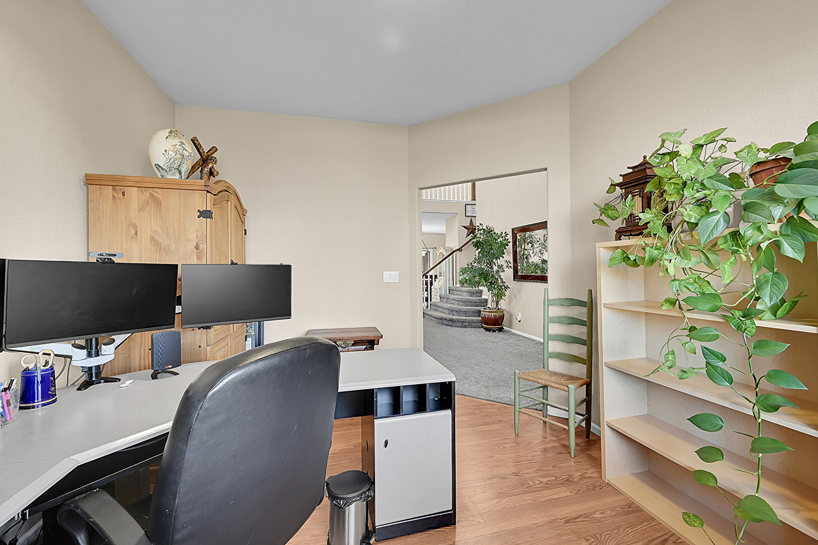 Baseboards Wall, Drywall, Natural Light, Office Area, Vent, Wood Finish Floor