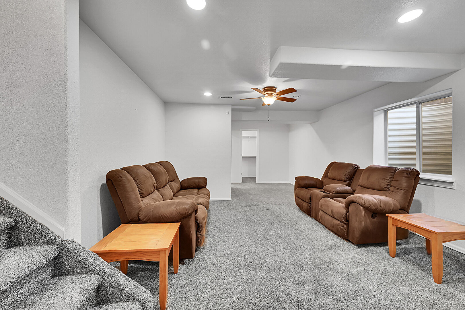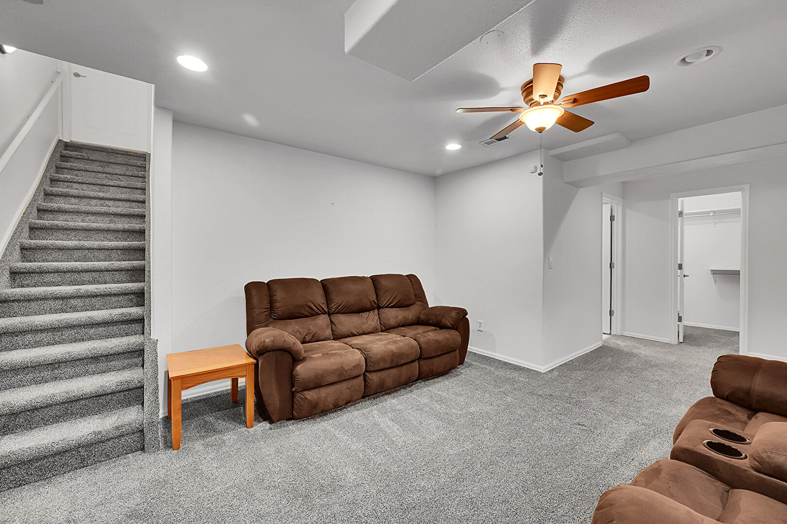 Accent Wall, Baseboards Wall, Basement, Carpet, Ceiling Fan, Closet, Drywall, Natural Light, Recessed Lighting, Scuttle, Smoke Carbon Monoxide Detector, Stairs, Vent, Wall Mounted Ac, Carpet, Ceiling Fan, Closet, Natural Light, Recessed Lighting, Textured Wall