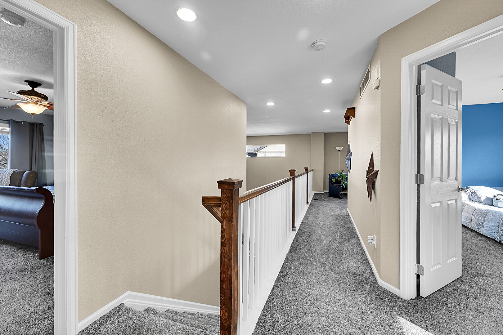 Baseboards Wall, Carpet, Drywall, Natural Light, Smoke Carbon Monoxide Detector, Upstairs Landing, Vent, Recessed Lighting