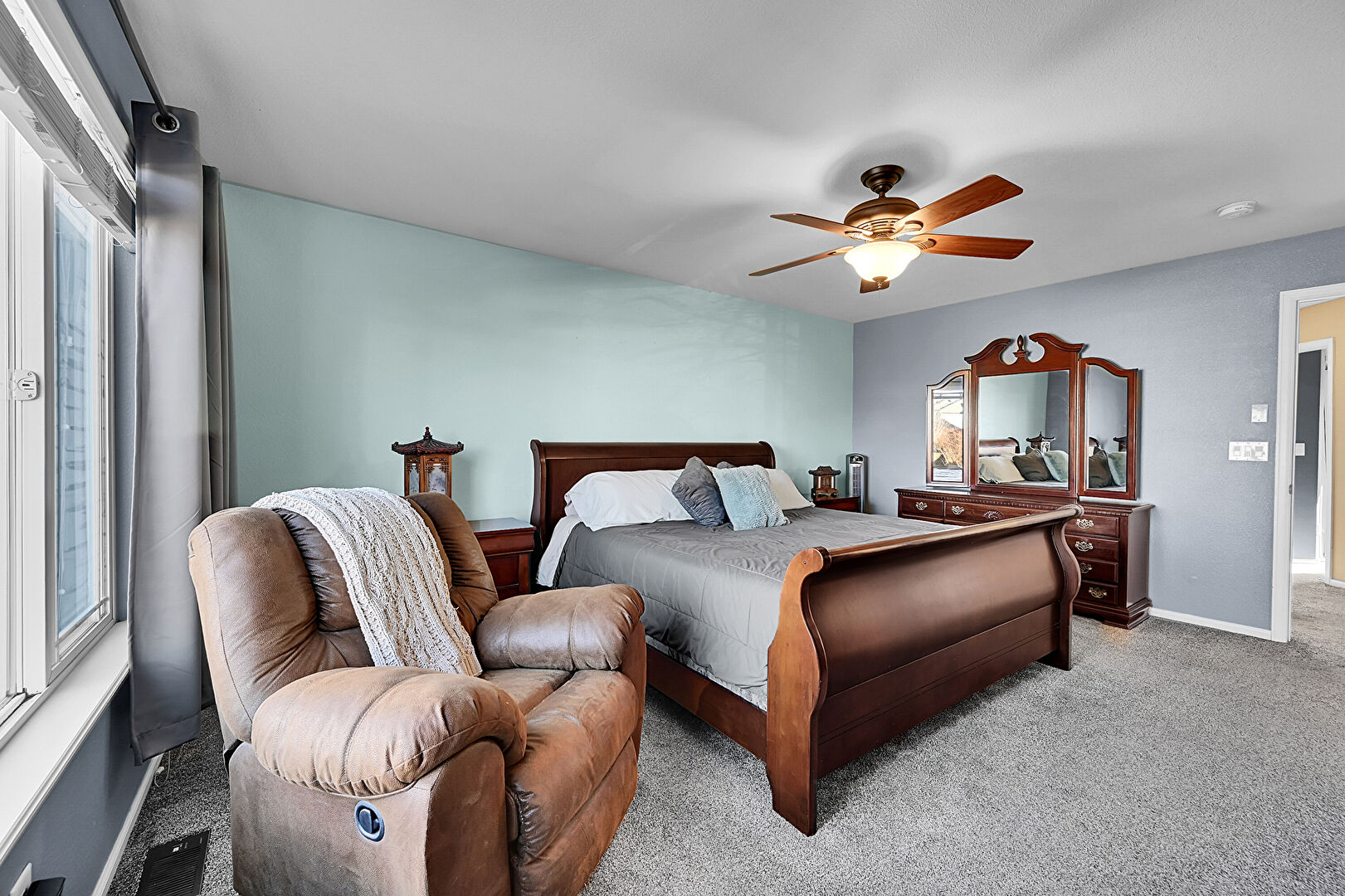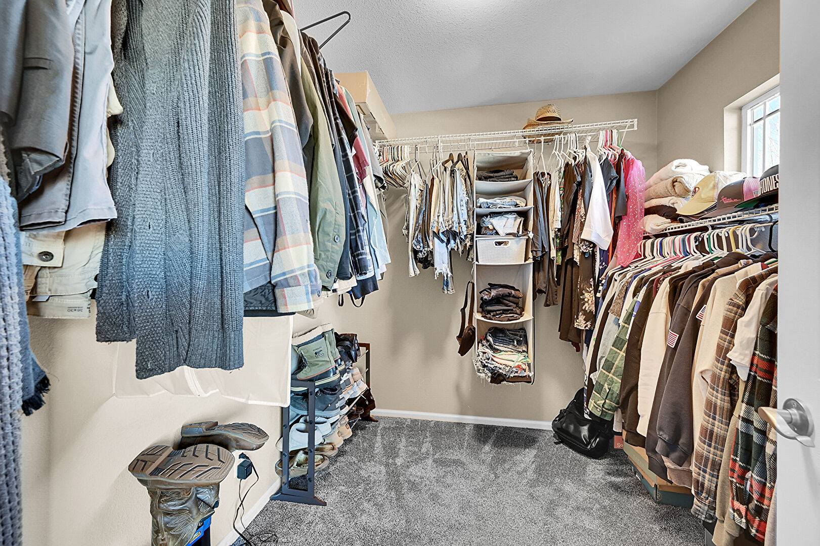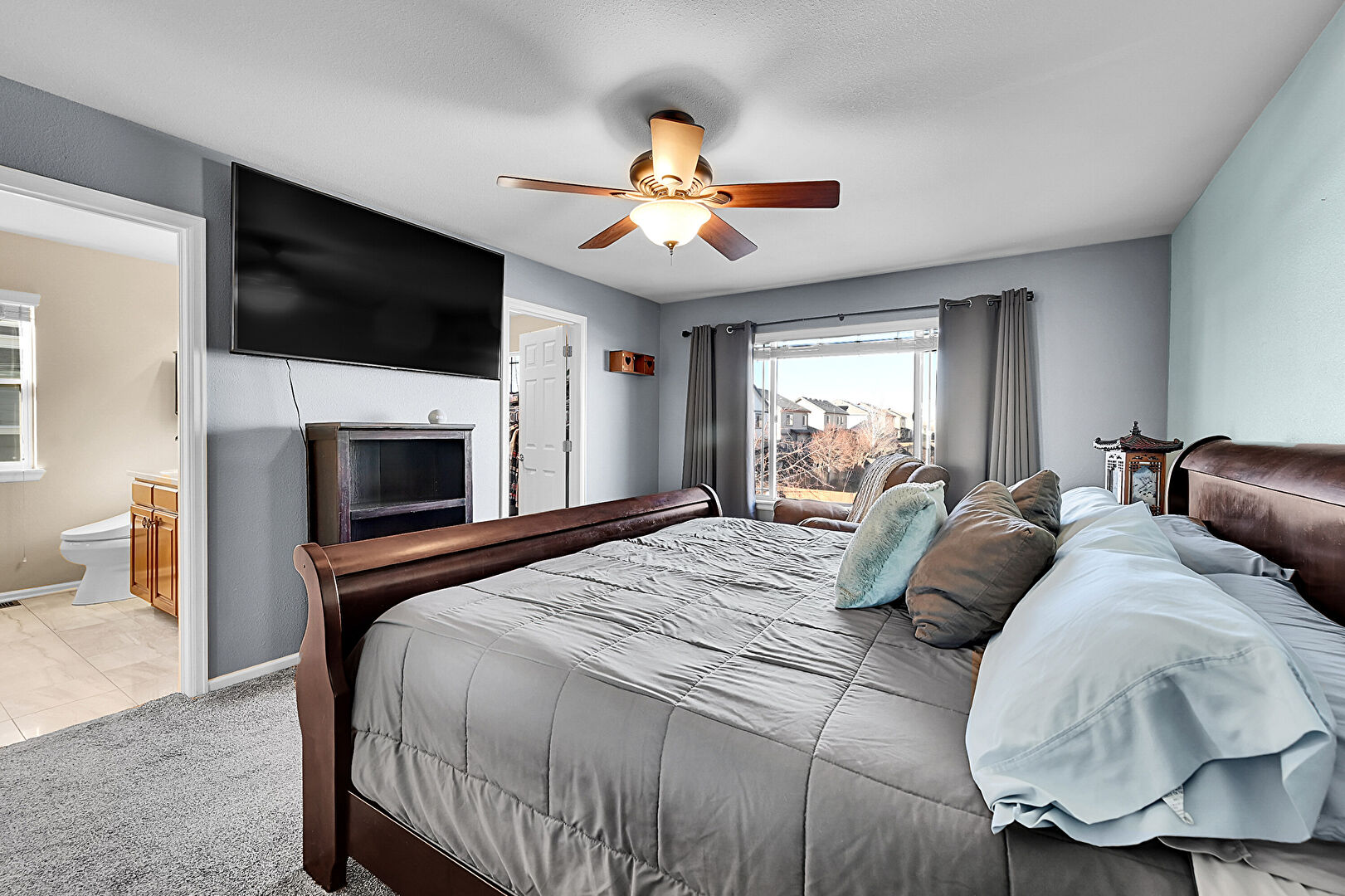 Baseboards Wall, Carpet, Ceiling Fan, Drywall, Ensuite Bathroom, Natural Light, Smoke Carbon Monoxide Detector, Textured Ceiling, Vent, Walk In Closet, Drywall, Natural Light