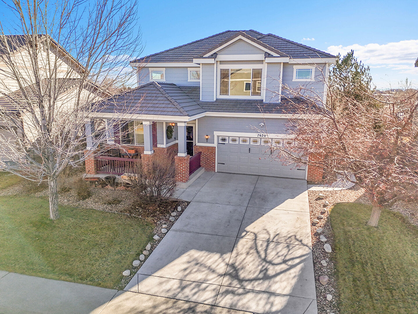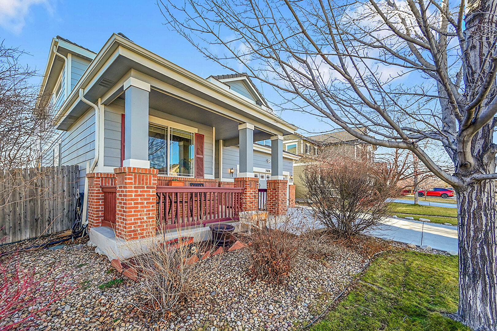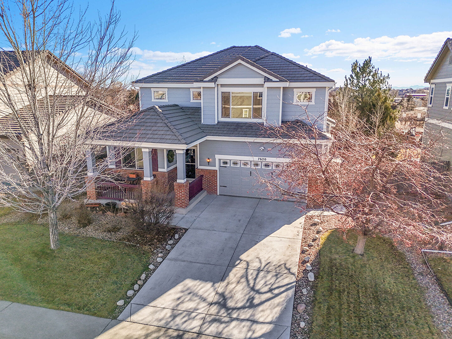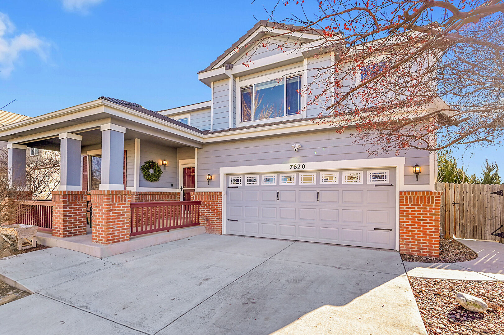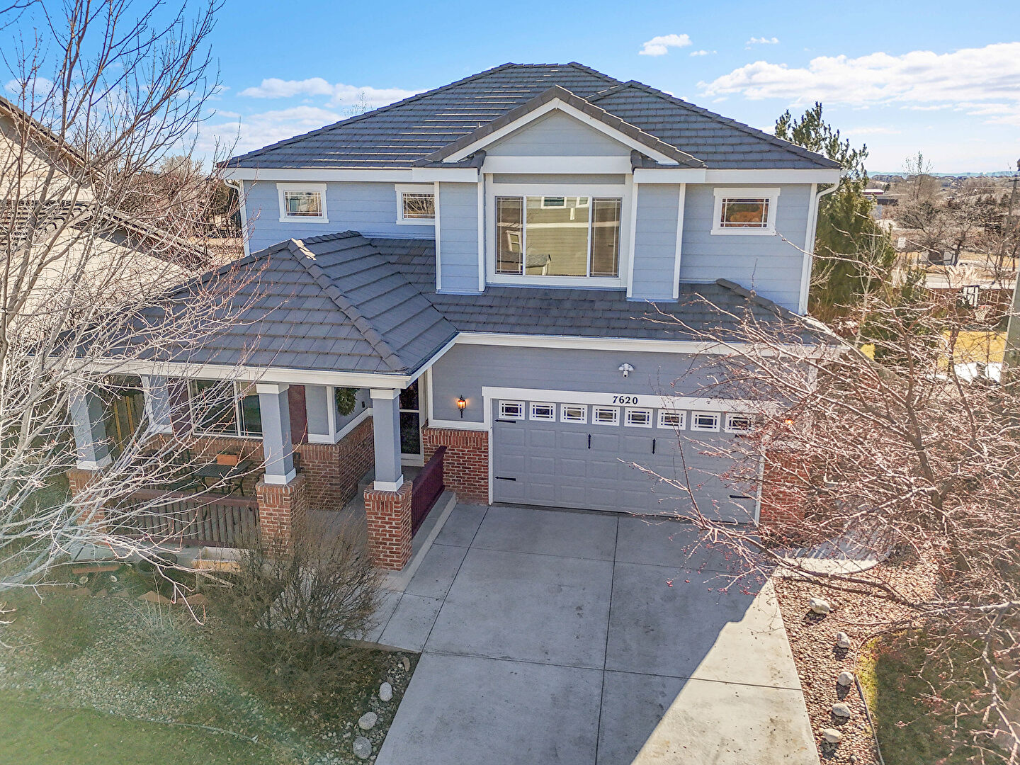 Brick Siding, Built In Garage, Downspout, Driveway, Fence, Gutters, Horizontal Siding, Lawn, Mountain View, Patio, Porch, Residential View, Tile Roof, Brick Siding, Horizontal Siding, Mountain View, Porch, Residential View, Tile Roof
