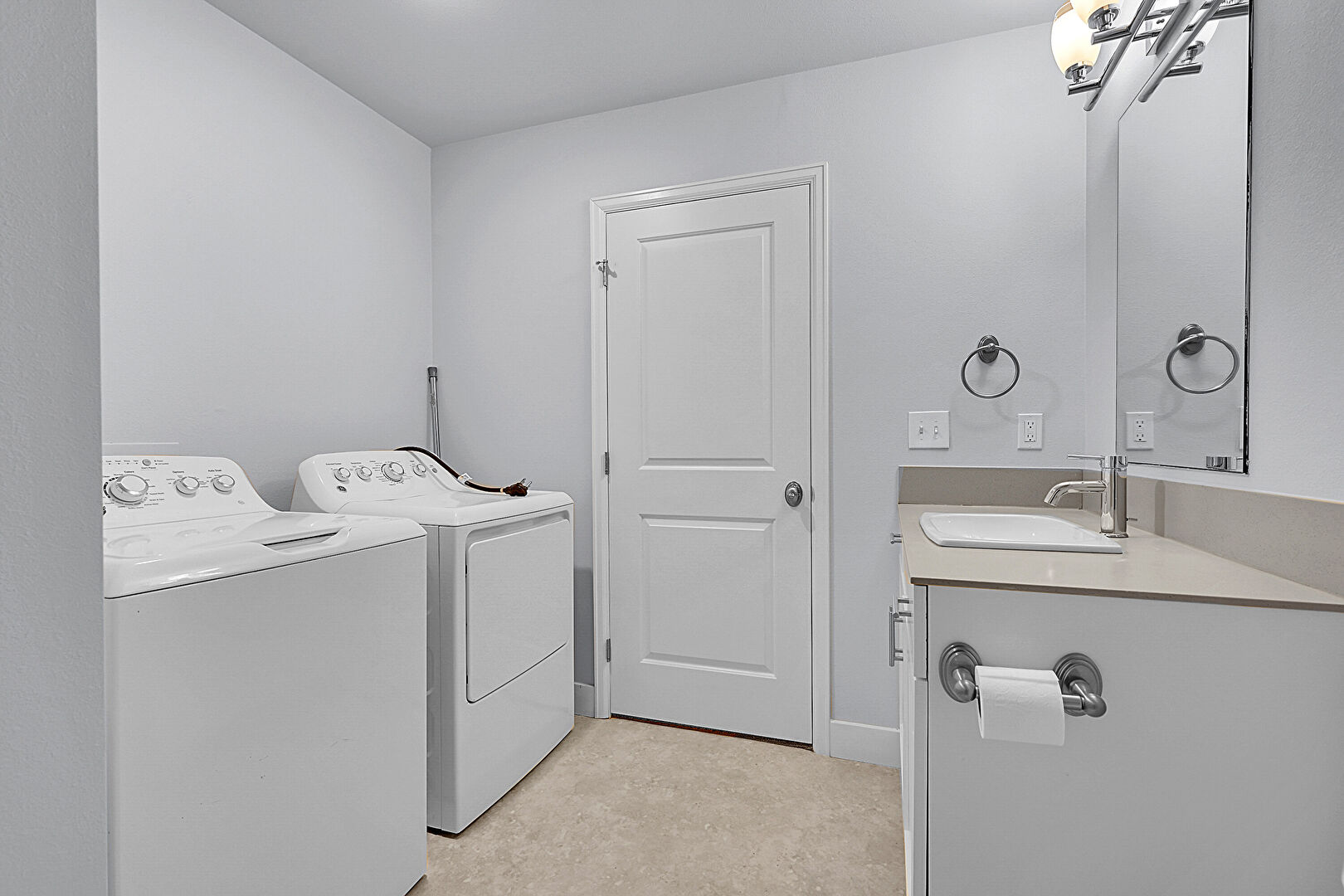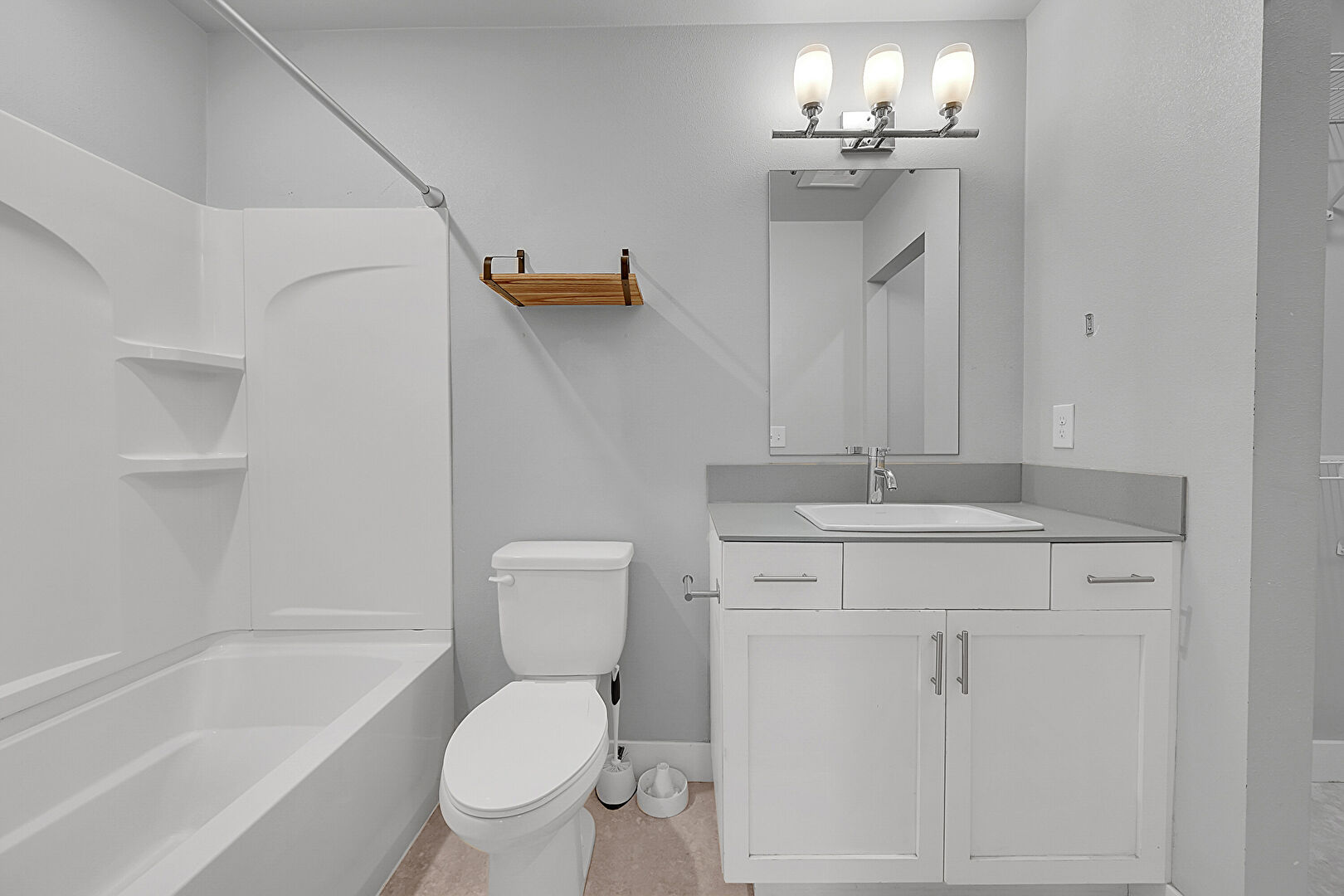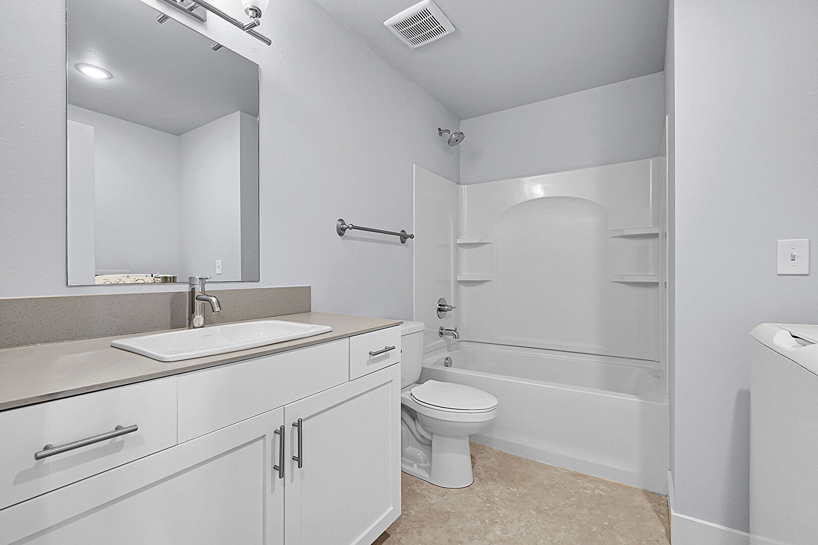 Combined Bath Shower, Drywall, Full Bathroom, Vanity, Vent, Washer Dryer, Laundry