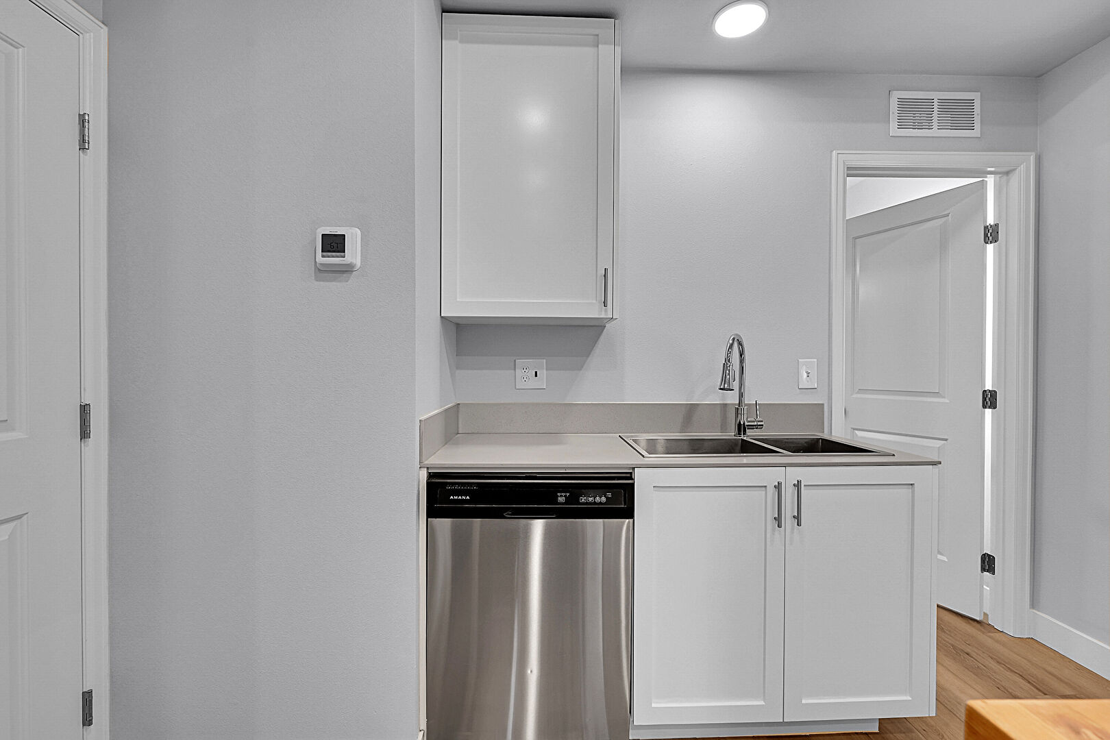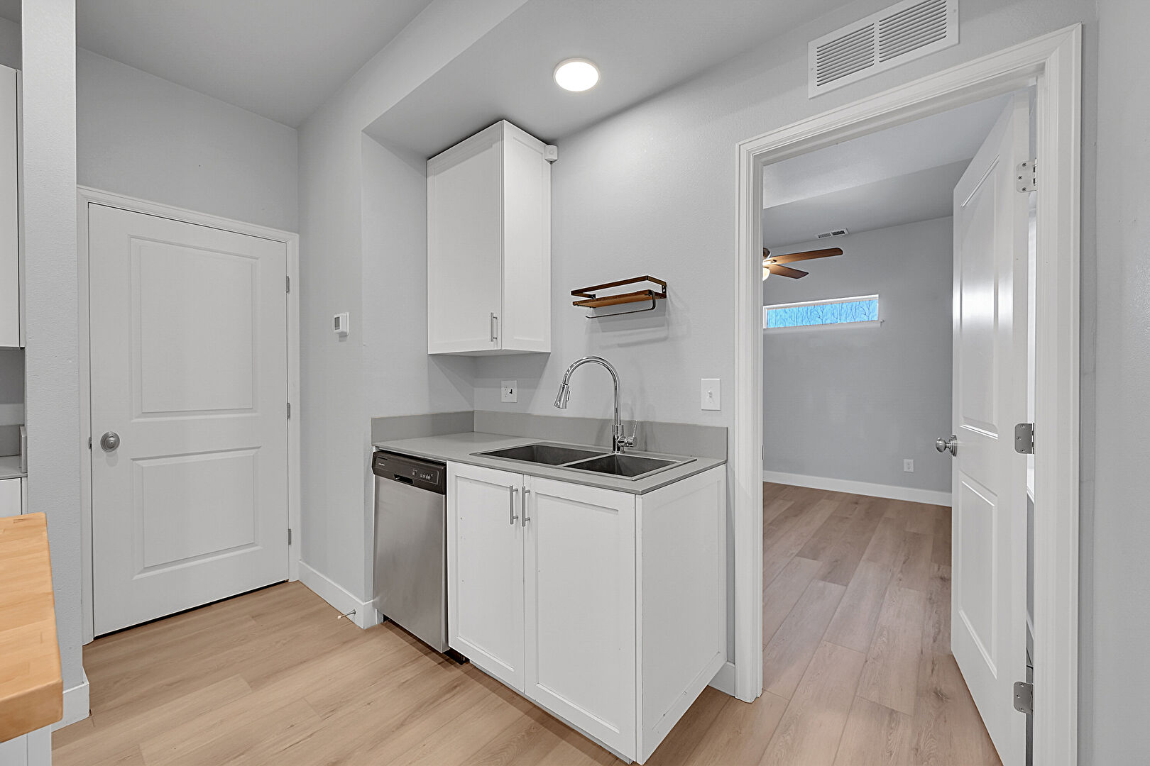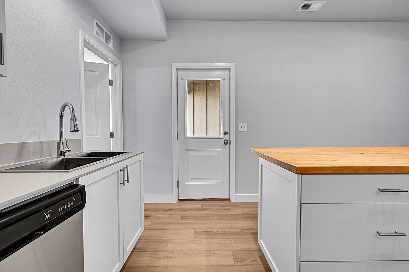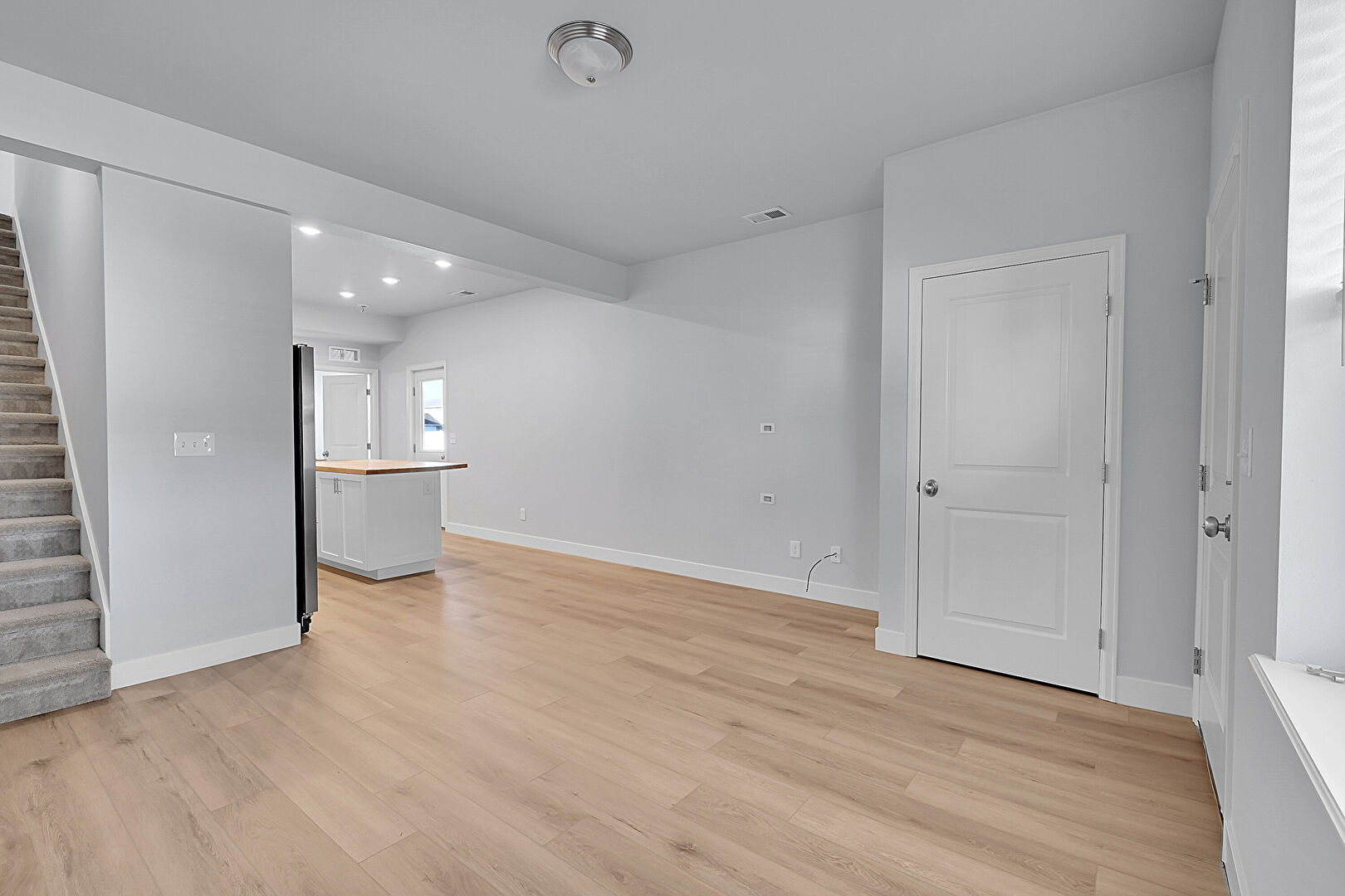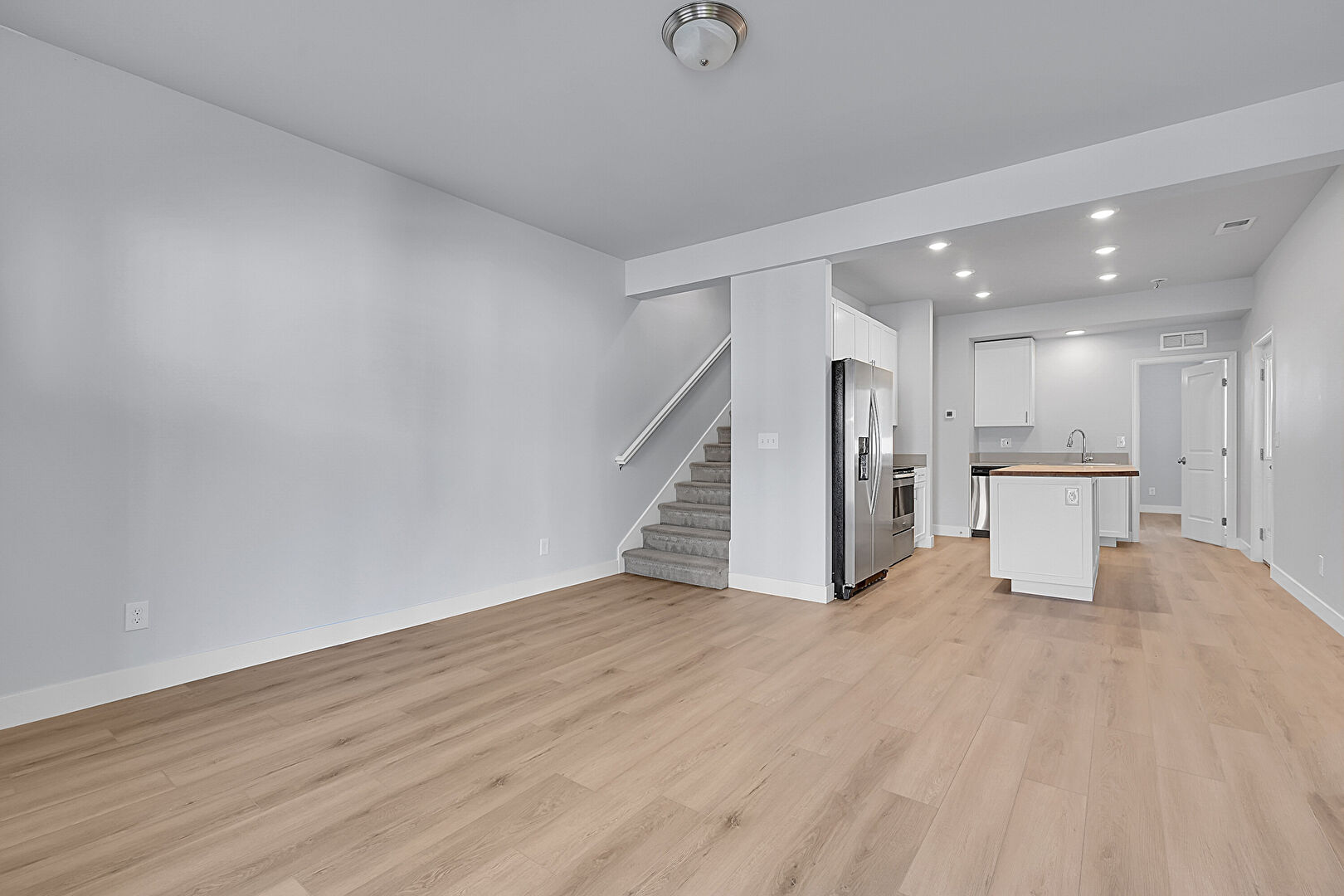 Baseboards Wall, Drywall, Natural Light, Recessed Lighting, Stairs, Vent, Wood Finish Floor, Drywall, L Shaped Kitchen, Natural Light