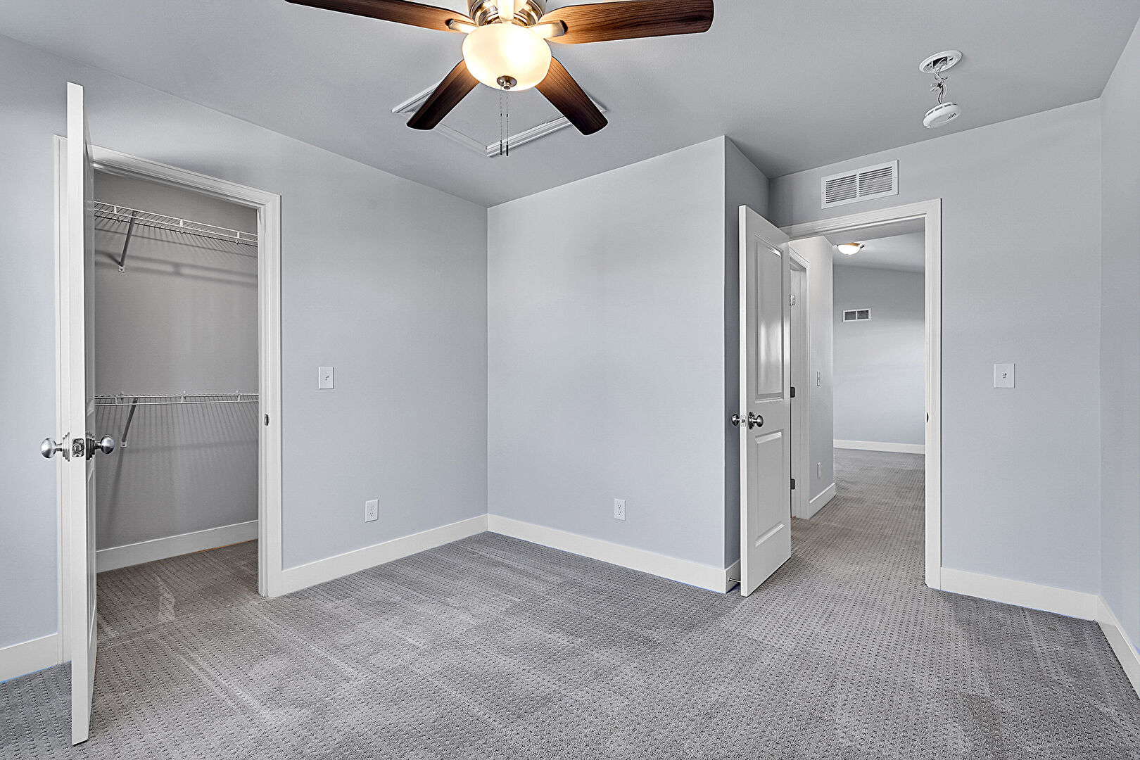 Baseboards Wall, Carpet, Ceiling Fan, Drywall, Natural Light, Scuttle, Vent, Walk In Closet