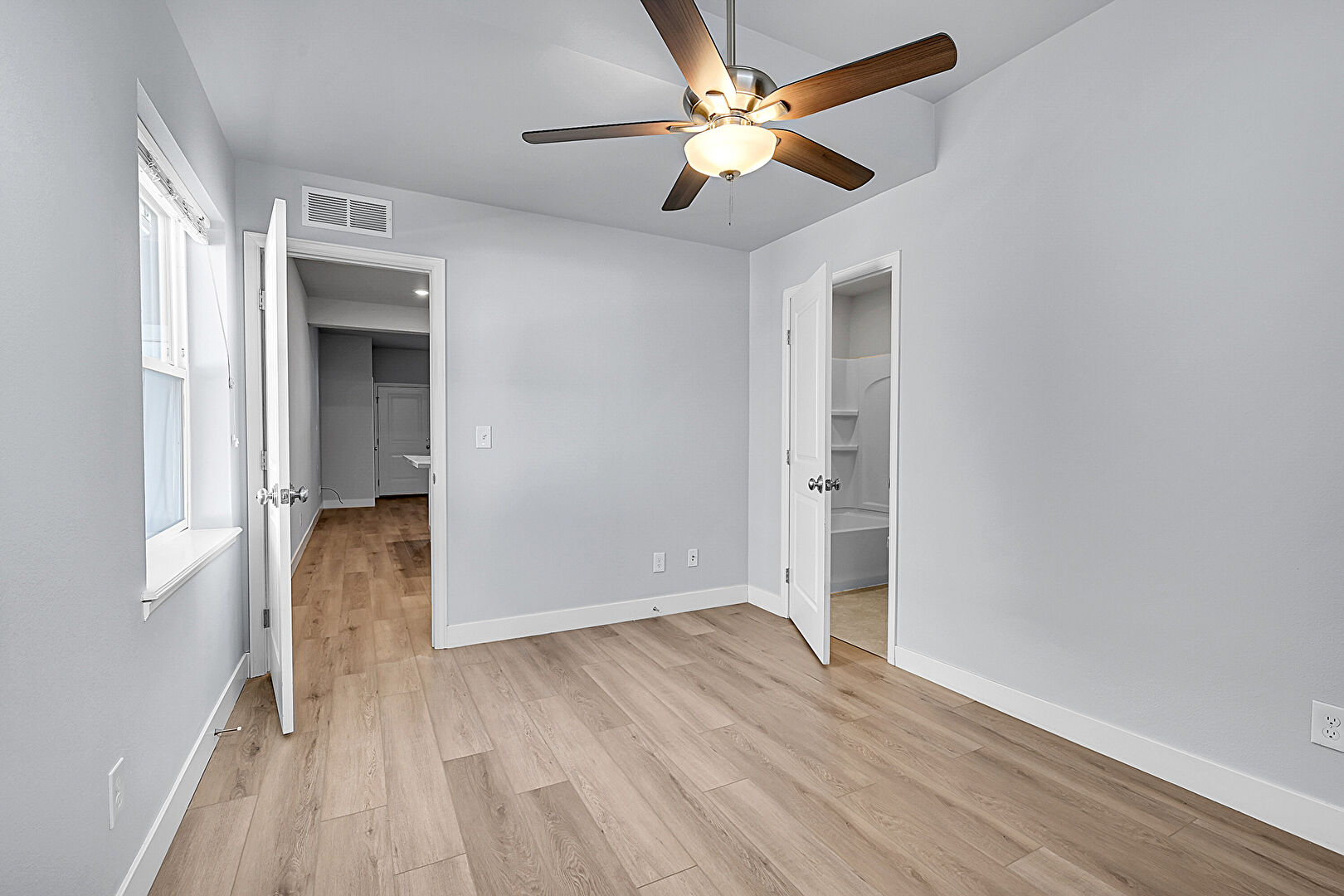Baseboards Wall, Ceiling Fan, Drywall, Ensuite Bathroom, Natural Light, Vent, Wood Finish Floor, Baseboards Wall, Ceiling Fan, Walk In Closet