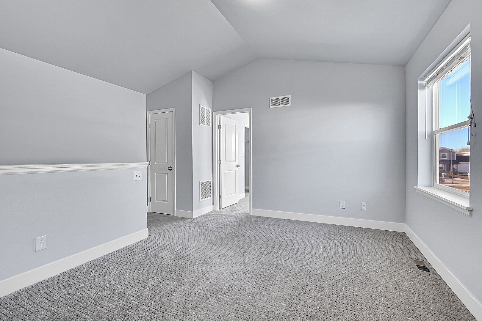 Baseboards Wall, Carpet, Drywall, Natural Light, Vaulted Ceiling, Vent, Baseboards Wall, Carpet, Vent