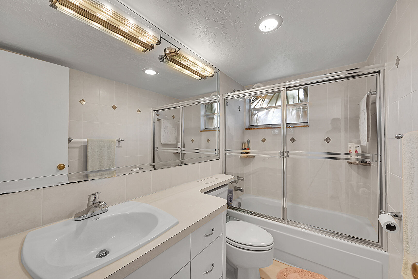 Natural Light, Textured Ceiling, Vanity, Full Bathroom