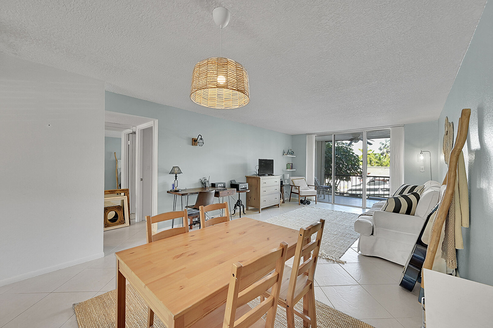 Baseboards Wall, Drywall, Floor Ceiling Windows, Natural Light, Office Area, Textured Ceiling, Tile Floor, Floor Ceiling Windows, Textured Ceiling