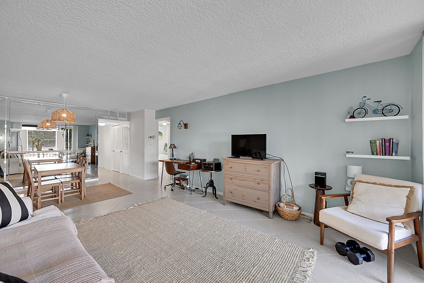 Drywall, Natural Light, Textured Ceiling, Tile Floor, Drywall, Textured Ceiling