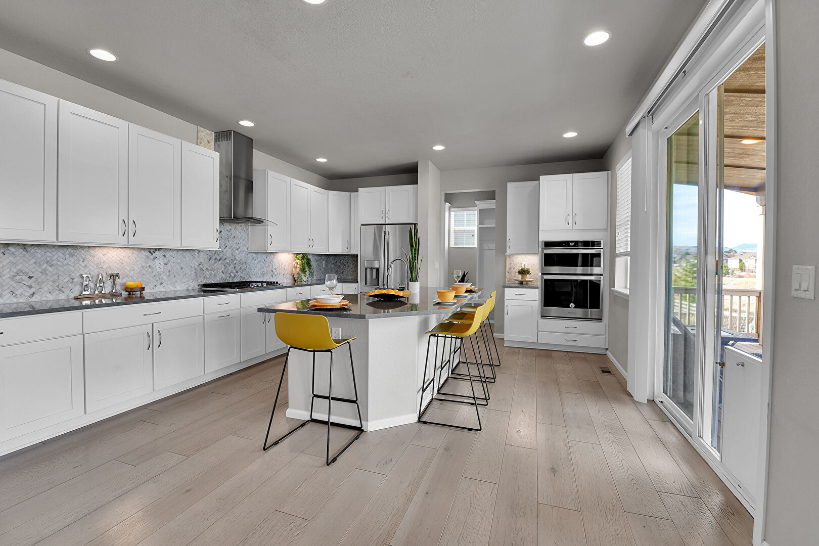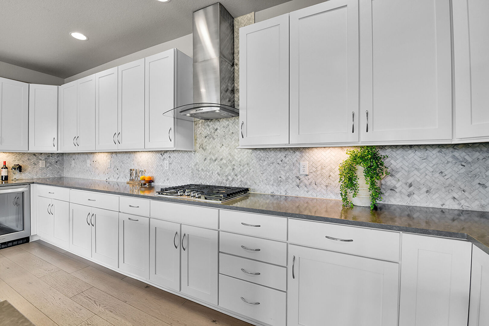 Baseboards Wall, Double Oven, Drywall, Kitchen Bar, Kitchen Island, L Shaped Kitchen, Natural Light, Notable Chandelier, Recessed Lighting, Shaker Cabinets, Stone Countertops, Textured Ceiling, U Shaped Kitchen, Vent, Wine Cooler, Wood Finish Floor, Kitchen Island, Pendant Lighting, Stone Countertops, Vent