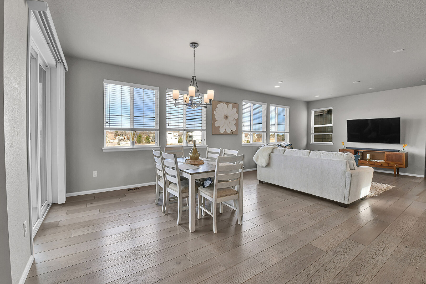 Baseboards Wall, Drywall, Natural Light, Notable Chandelier, Recessed Lighting, Textured Ceiling, Vent, Wood Finish Floor, Baseboards Wall, Notable Chandelier