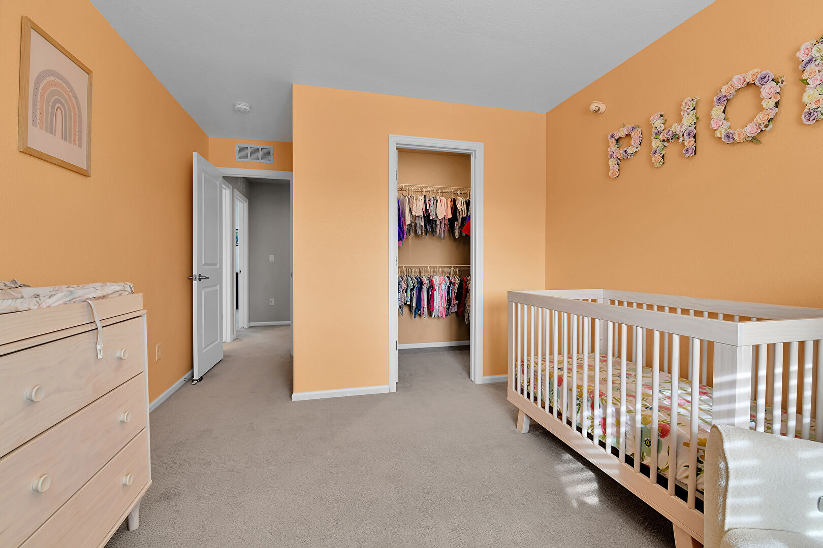 Baseboards Wall, Carpet, Drywall, Natural Light, Nursery, Textured Ceiling, Vent, Walk In Closet, Nursery, Vent