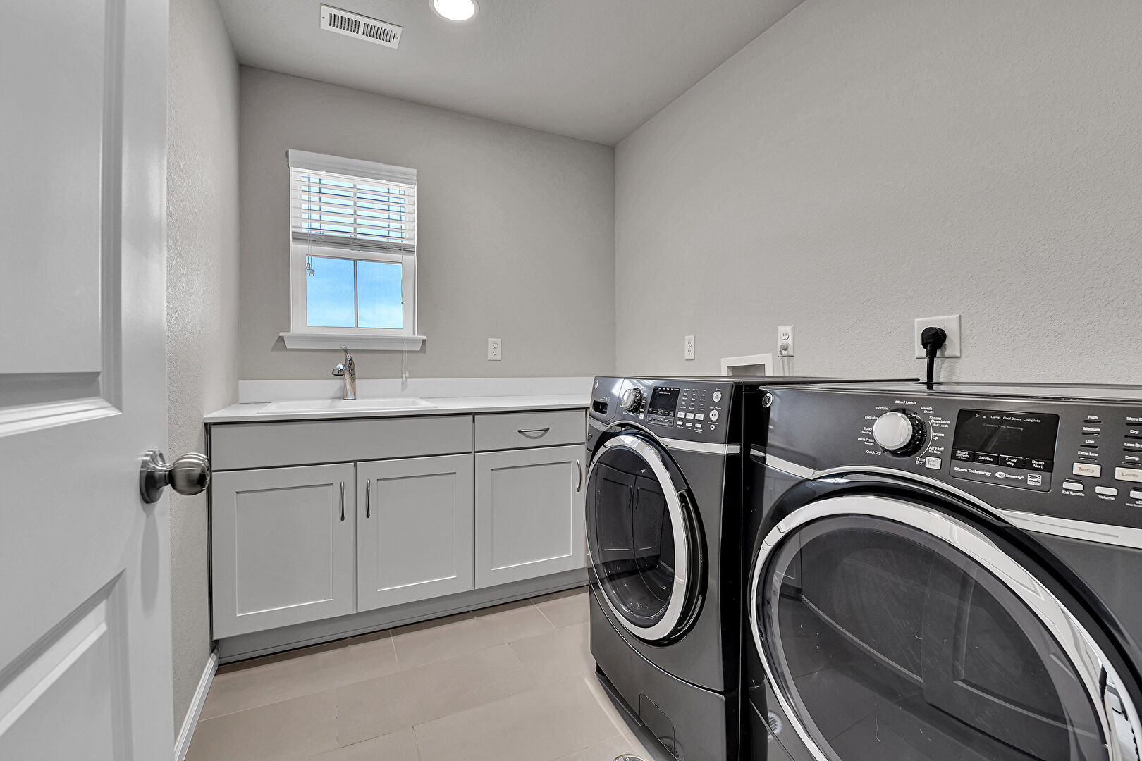 Drywall, Electric Dryer Hookup, Laundry, Recessed Lighting, Tile Floor, Vent, Washer Hookup, Natural Light