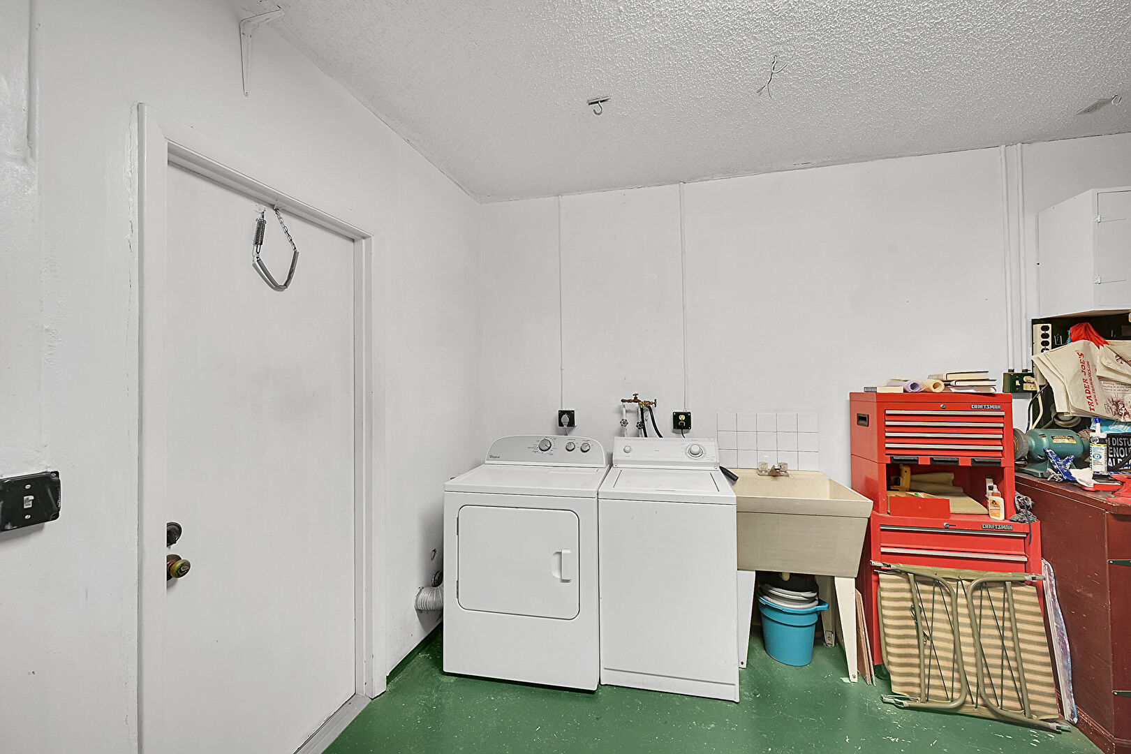 Concrete Floor, Drywall, Laundry, Washer Hookup, Textured Ceiling