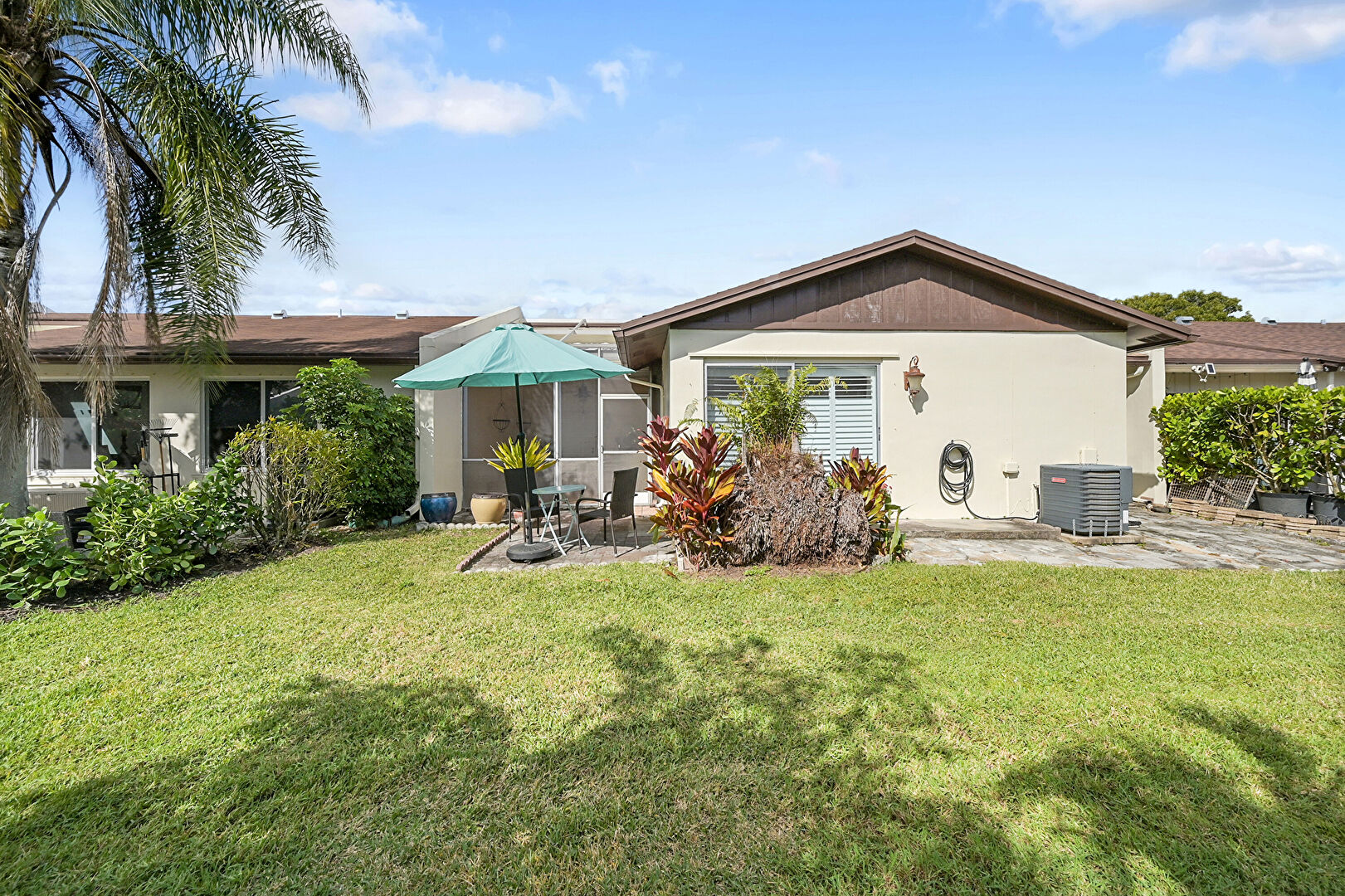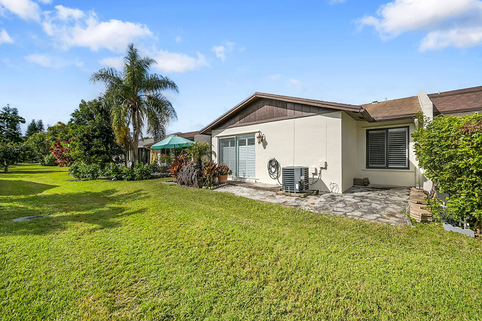 Central Ac, Downspout, Gutters, Lawn, Outdoor Structure, Patio, Stucco Siding, Vertical Siding, Central Ac, Patio, Stucco Siding