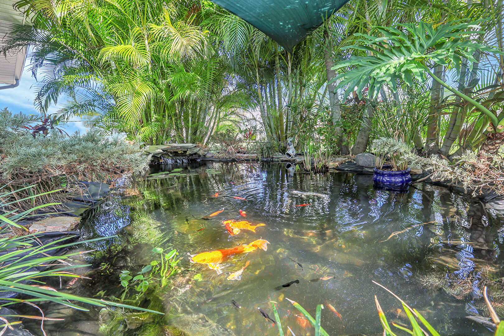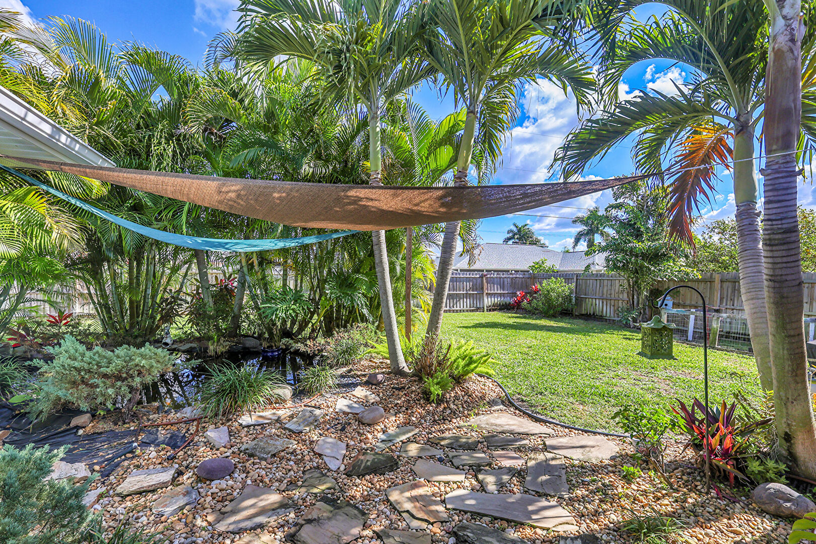 Ceiling Fan, Downspout, Fence, Grill, Gutters, Lawn, Shingle Roof, Sunroom, Stucco Siding