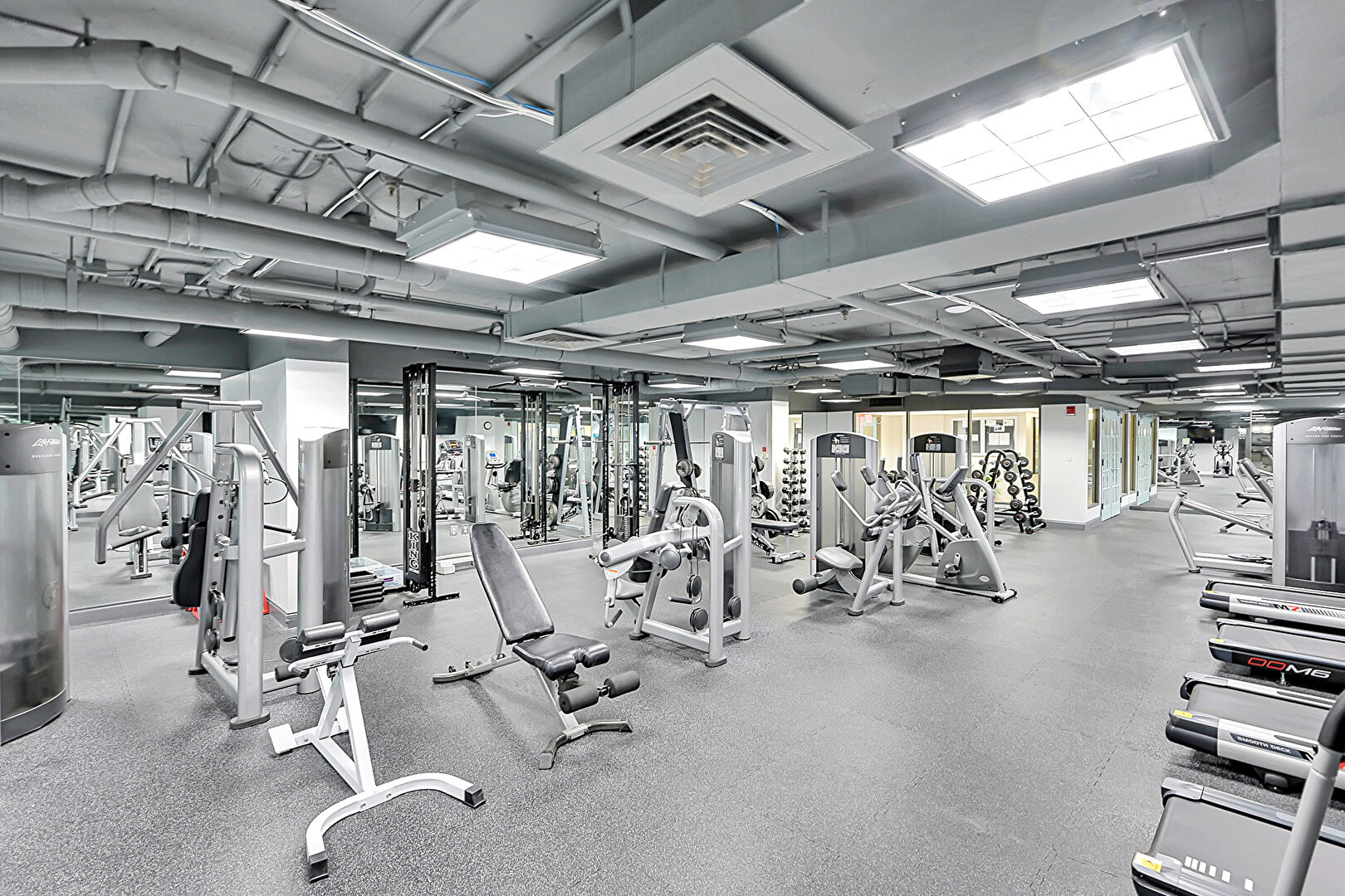 Baseboards Wall, Drop Ceiling, Elevator, Inlaid Floor, Recessed Lighting, Smoke Carbon Monoxide Detector, Tile Floor, Drywall