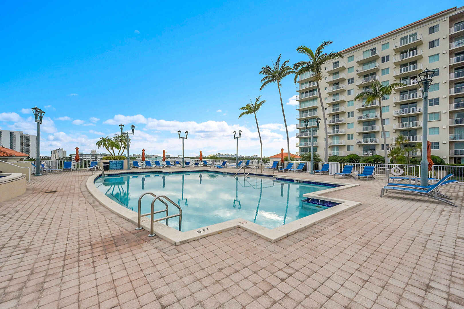 Apartment Complex View, City View, Fence, Handrail, Hot Tub, Lawn, Patio, Pool, Tennis Court, Fence, Patio