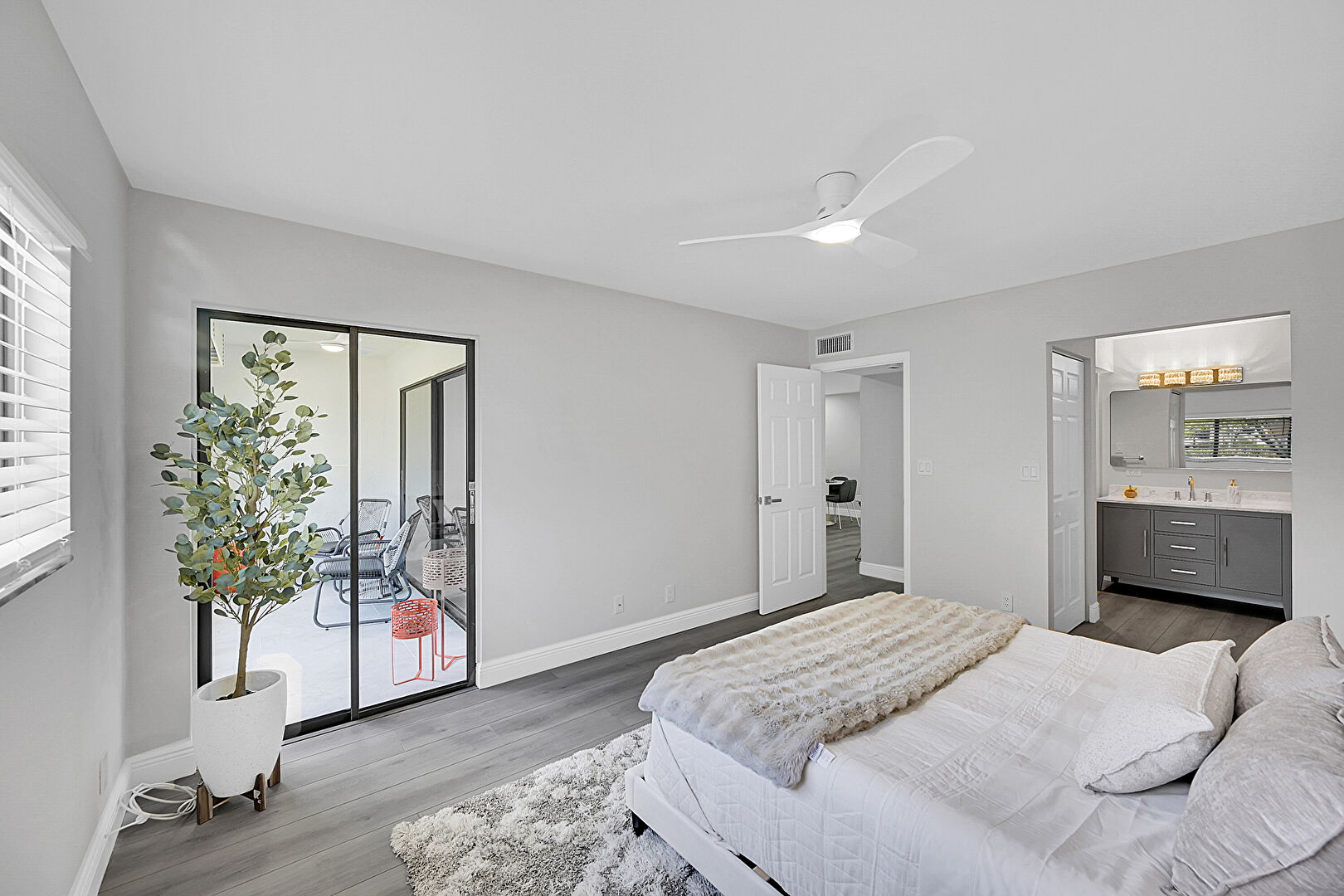 Access To Exterior, Baseboards Wall, Ceiling Fan, Drywall, Ensuite Bathroom, Natural Light, Vent, Wood Finish Floor, Access To Exterior, Baseboards Wall, Closet