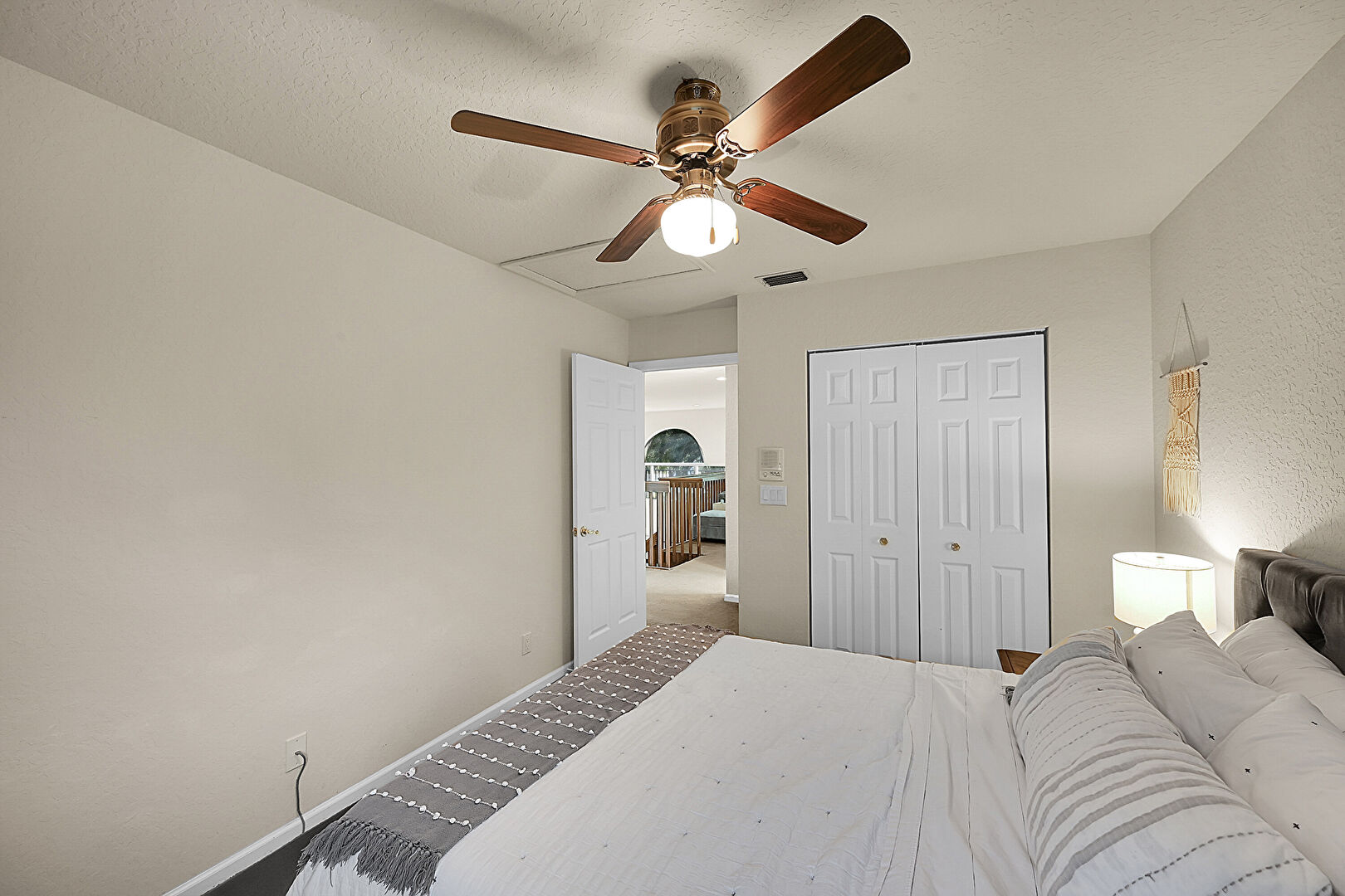Baseboards Wall, Carpet, Ceiling Fan, Closet, Drywall, Natural Light, Textured Ceiling, Textured Wall, Vent, Ceiling Fan, Textured Ceiling