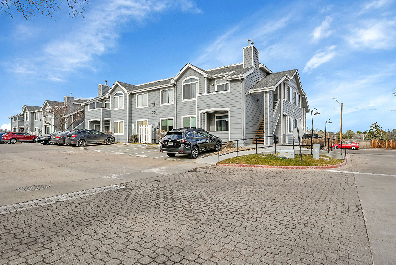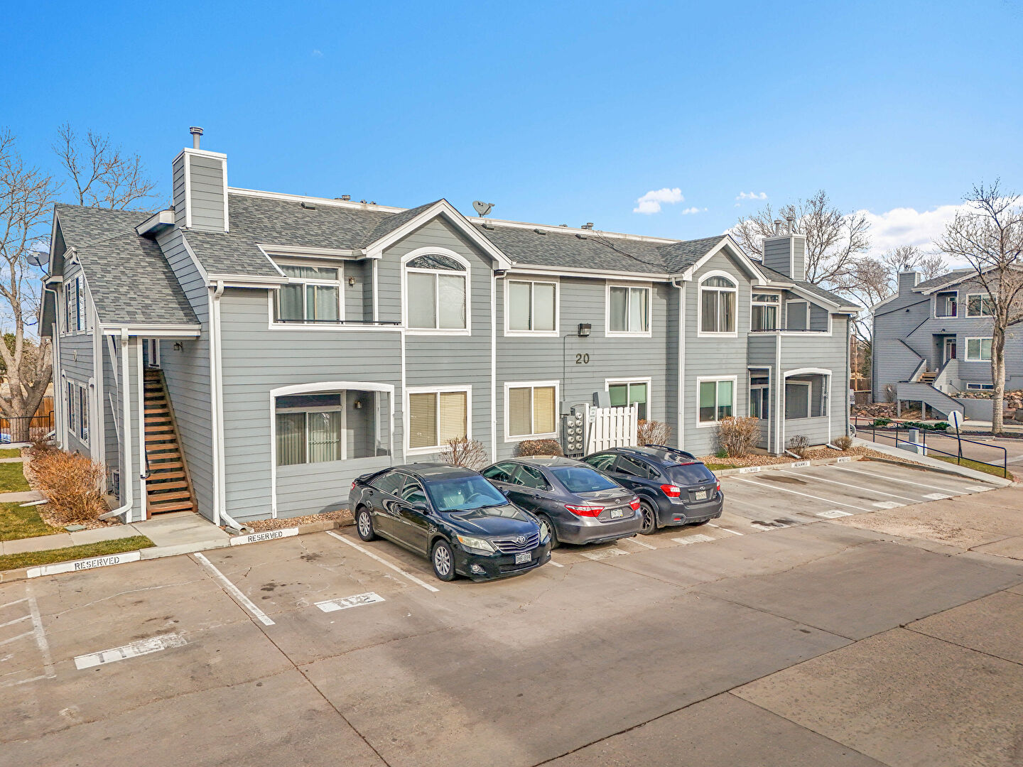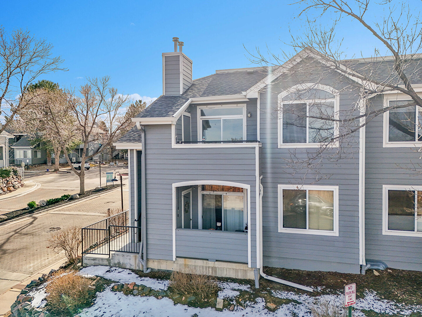 Balcony, Chimney, Downspout, Gutters, Horizontal Siding, Parking Lot, Shingle Roof, Residential View