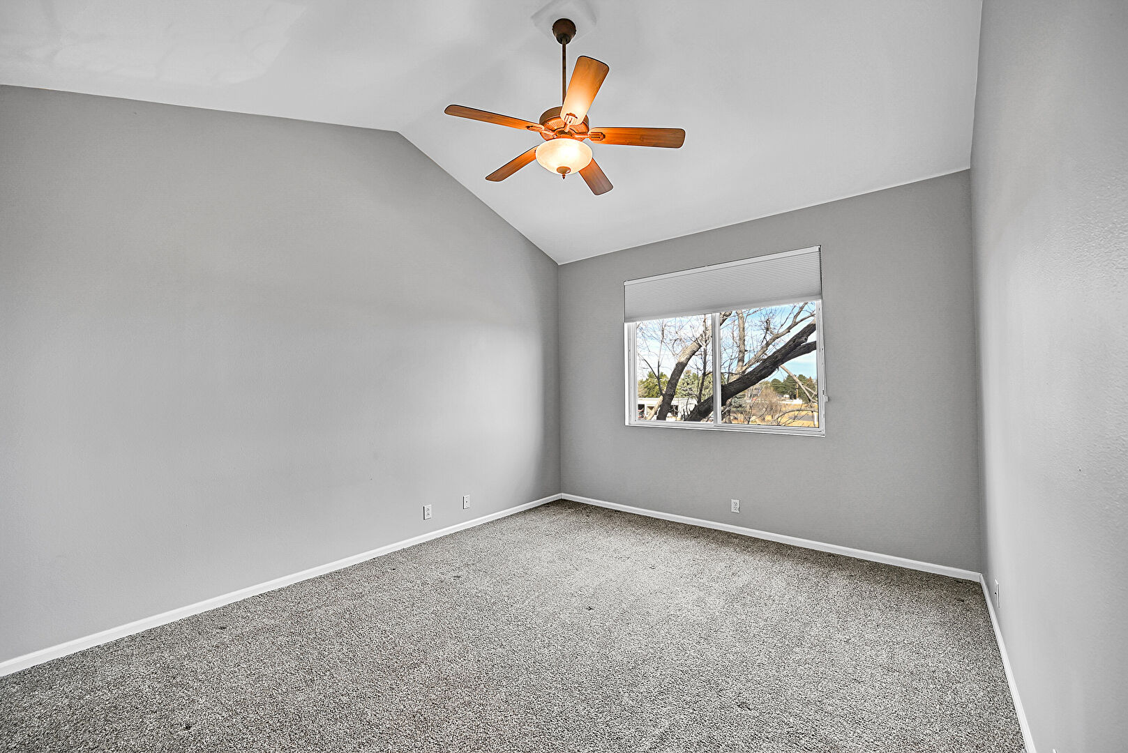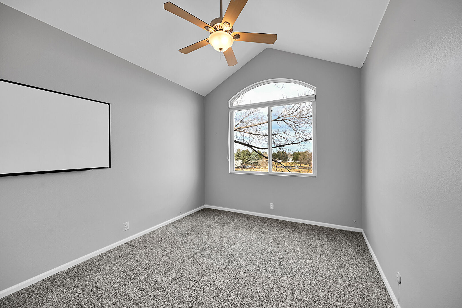 Baseboards Wall, Carpet, Cathedral Ceiling, Ceiling Fan, Drywall, Natural Light, Vaulted Ceiling, Ceiling Fan, High Ceiling