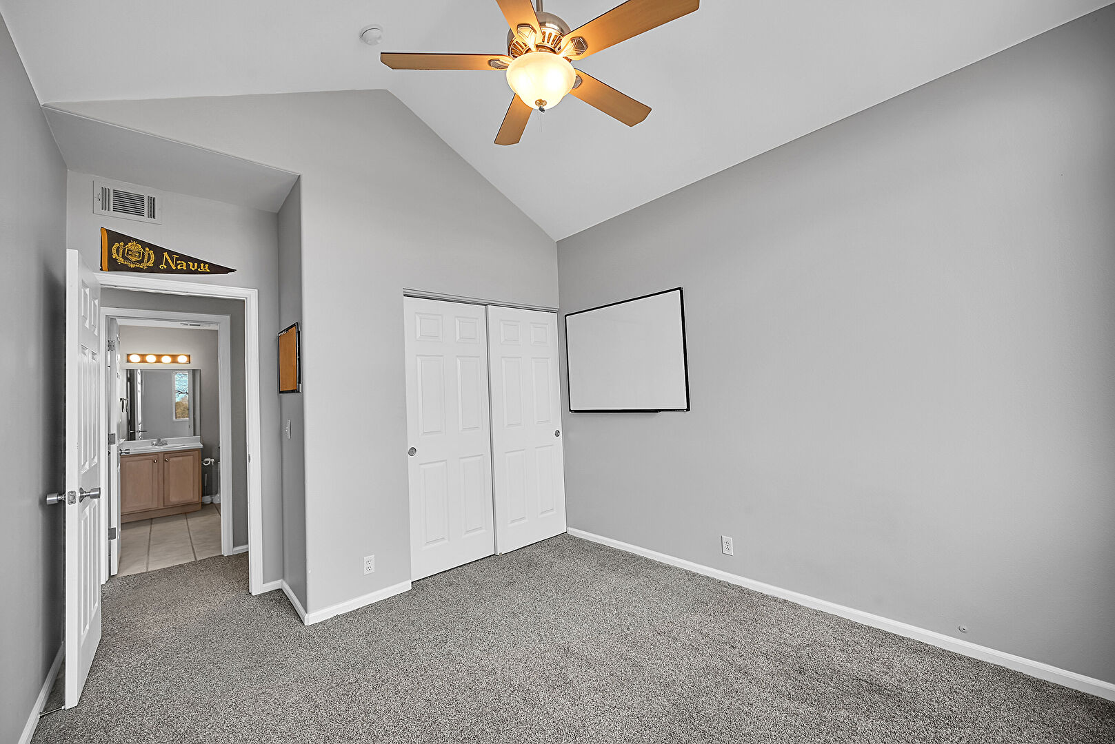 Baseboards Wall, Carpet, Cathedral Ceiling, Ceiling Fan, Closet, Drywall, High Ceiling, Natural Light, Vaulted Ceiling, Vent, Cathedral Ceiling, Vaulted Ceiling