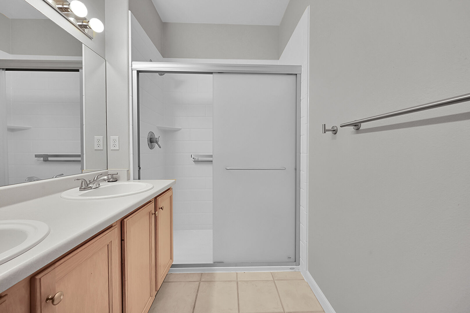 Drywall, Full Bathroom, Tile Floor, Vanity, Walk In Closet, Double Vanity, Full Bathroom