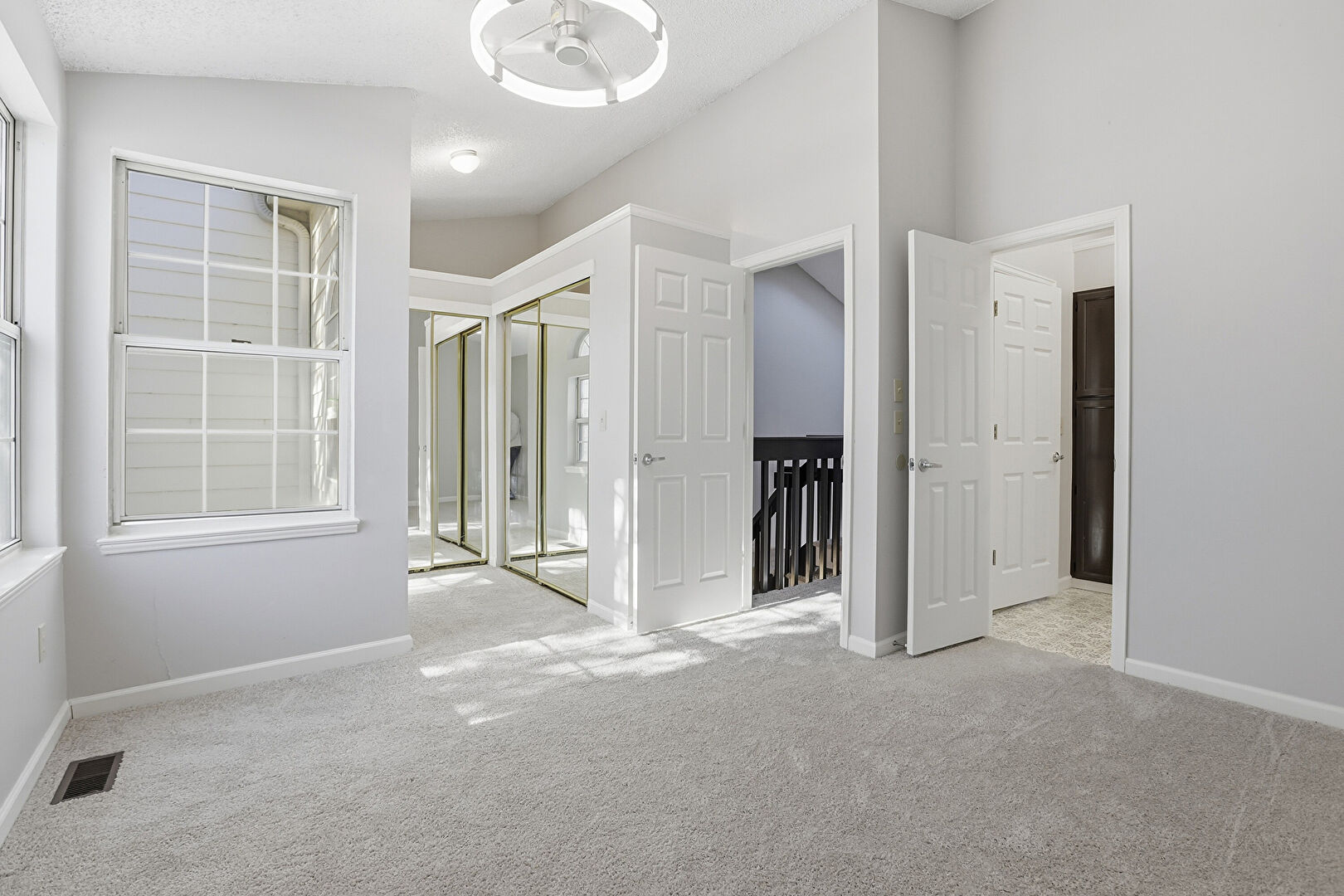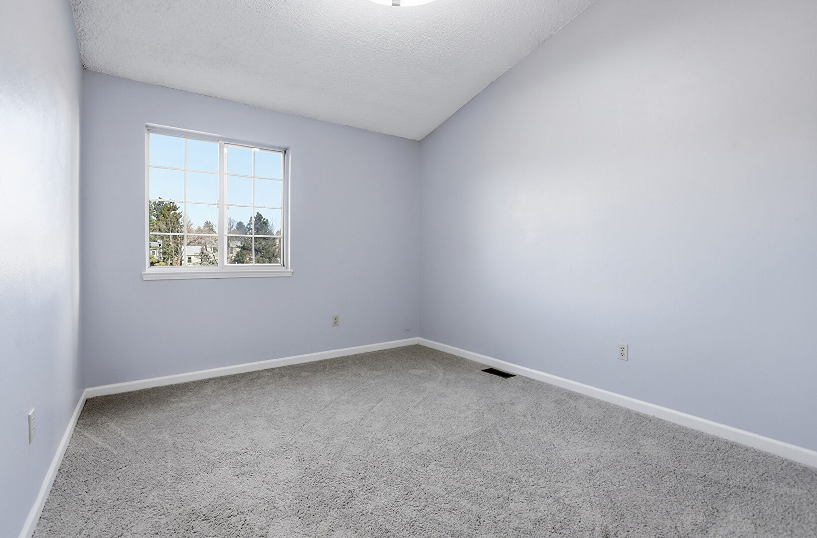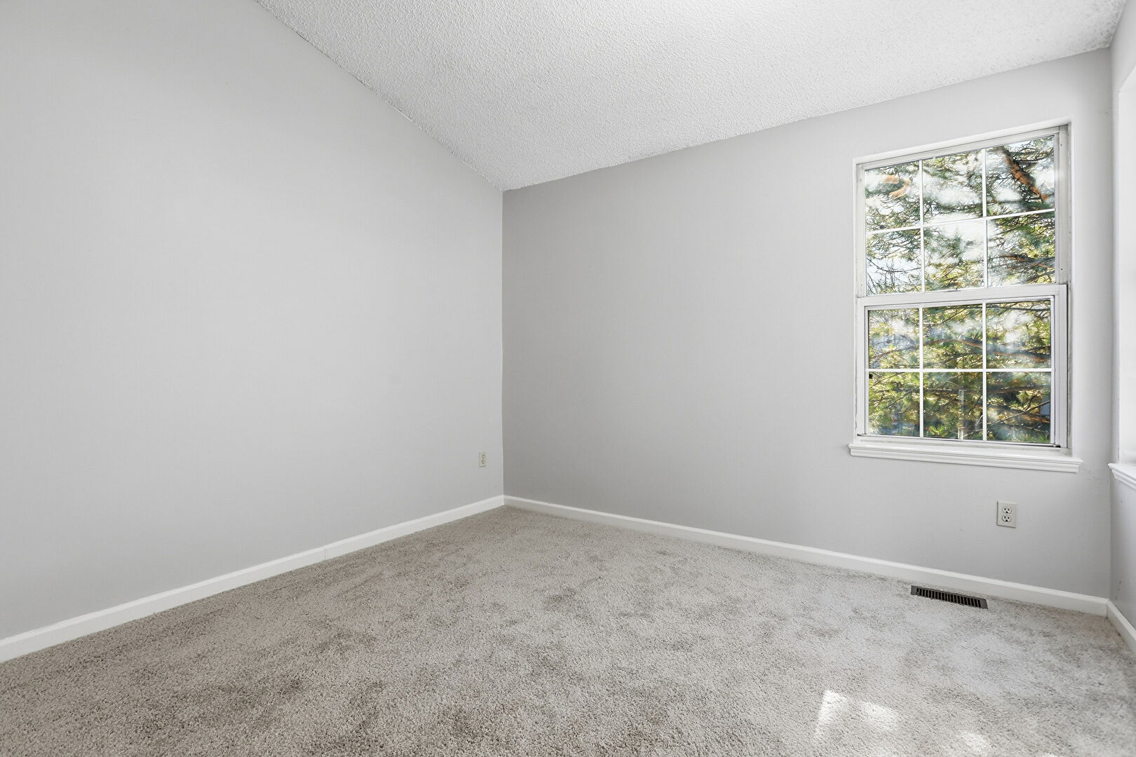 Baseboards Wall, Carpet, Closet, Drywall, Natural Light, Textured Ceiling, Vaulted Ceiling, Vent, Drywall, Textured Ceiling, Vaulted Ceiling