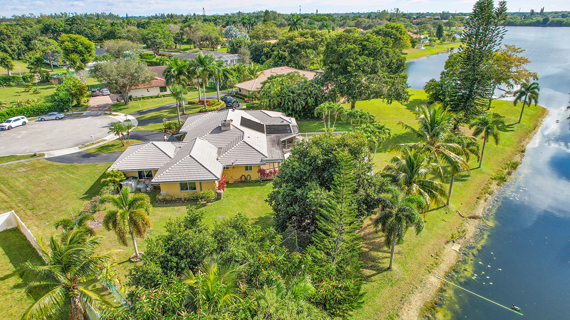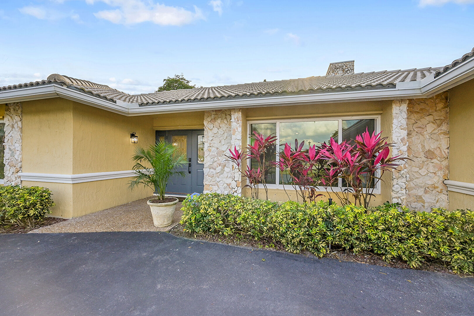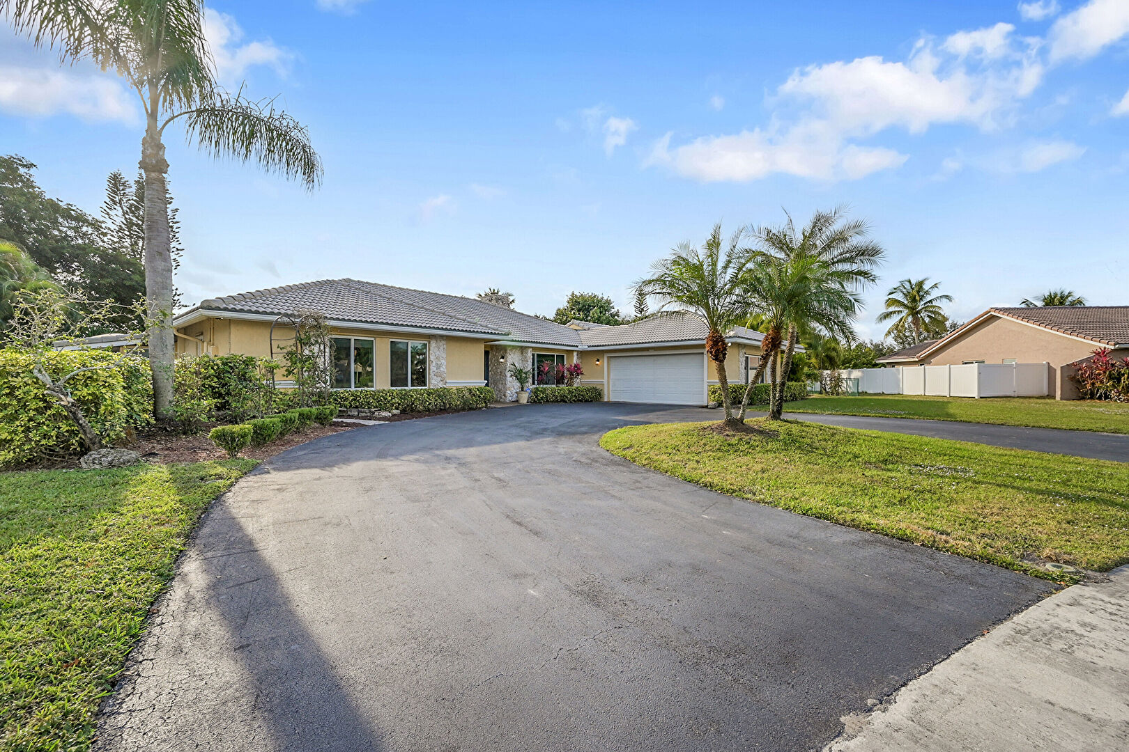 Driveway, Fence, Lawn, Stucco Siding, Tile Roof, Driveway, Stucco Siding