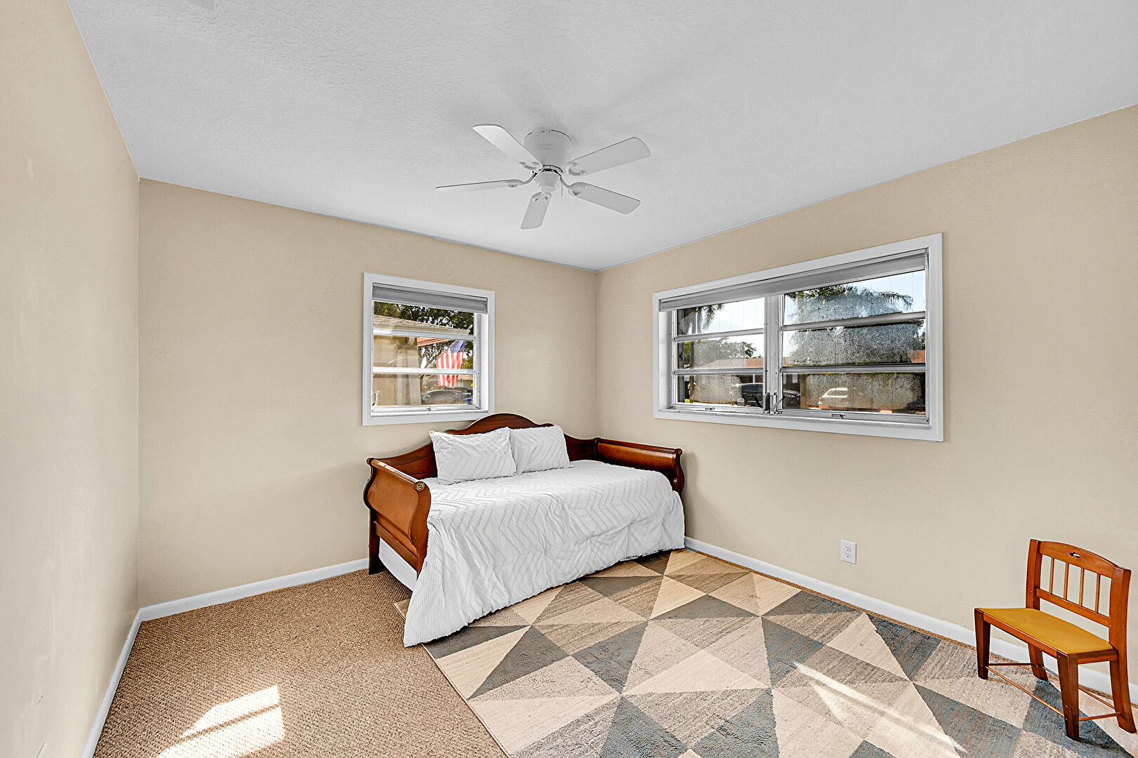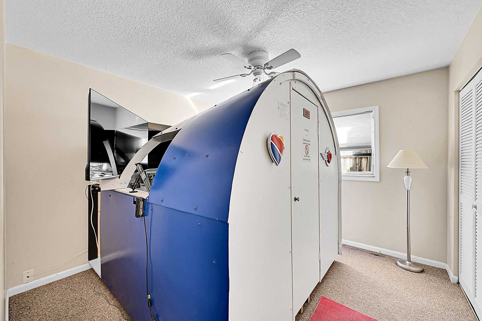 Baseboards Wall, Carpet, Ceiling Fan, Closet, Drywall, Natural Light, Textured Ceiling, Carpet, Ceiling Fan