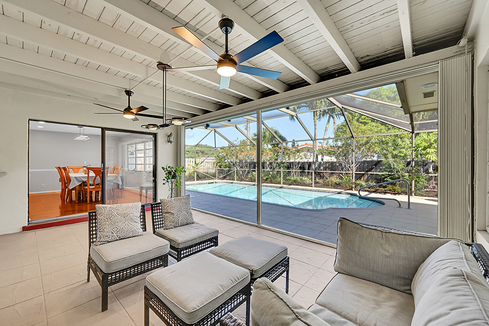 Ceiling Fan, Handrail, Lanai, Outdoor Living Space, Patio, Pool, Sunroom, Vent, Fence, Outdoor Living Space, Patio