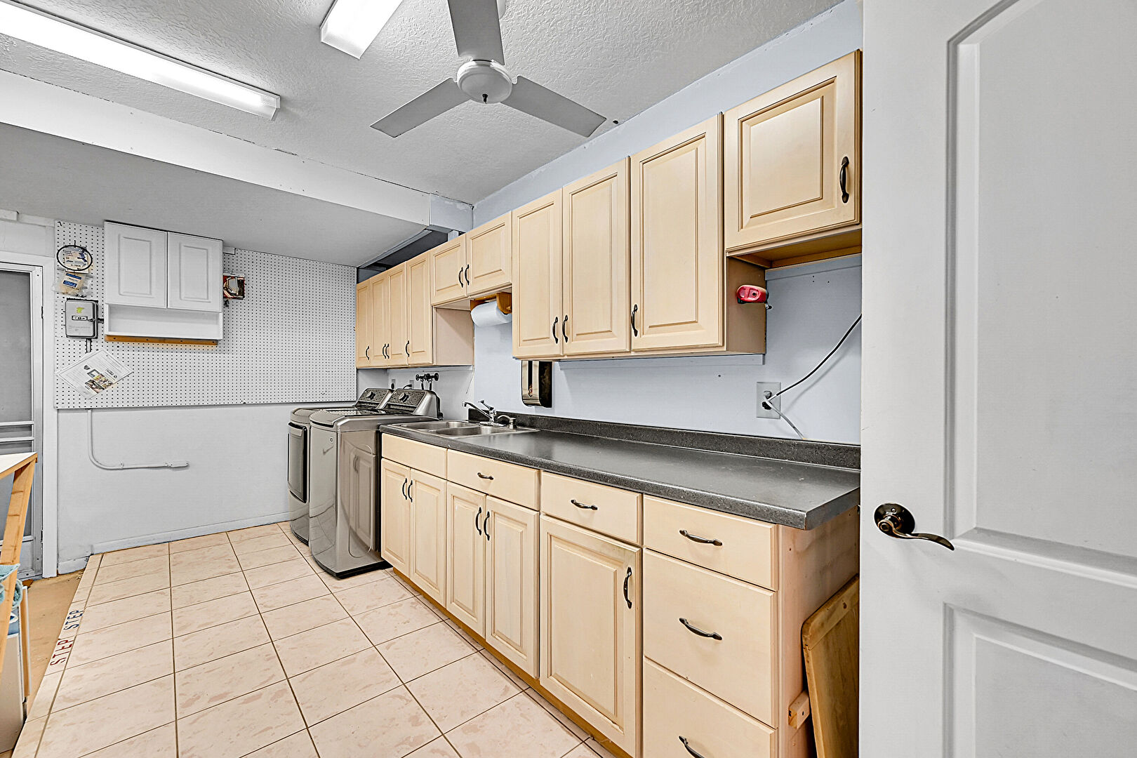 Ceiling Fan, Drywall, Electric Dryer Hookup, Laundry, Tile Floor, Washer Hookup, Textured Ceiling
