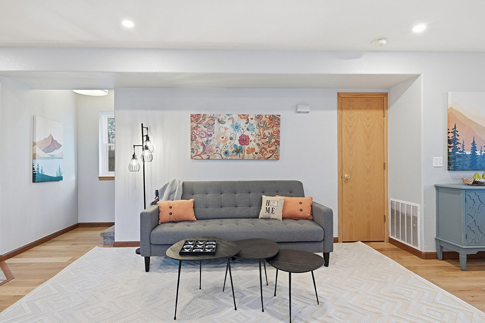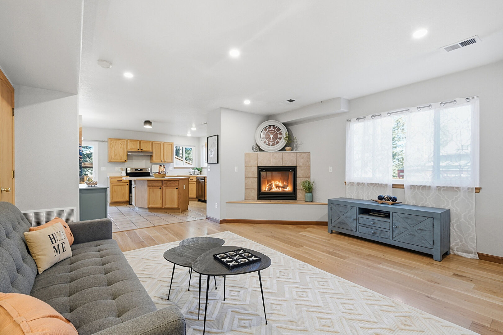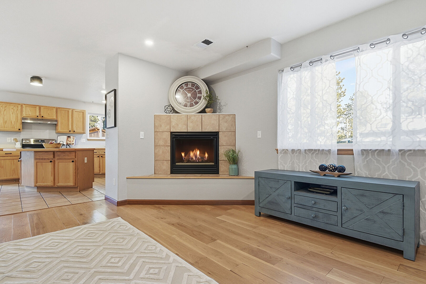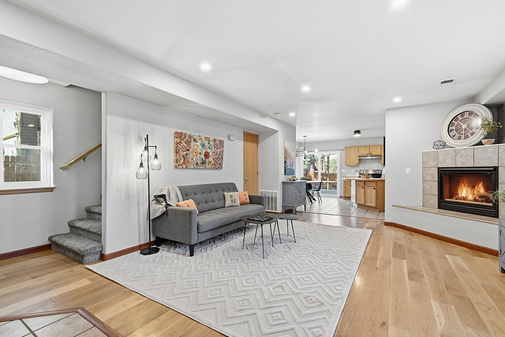 Baseboards Wall, Drywall, Fireplace, Natural Light, Recessed Lighting, Smoke Carbon Monoxide Detector, Stairs, Vent, Wood Finish Floor, Drywall, Notable Chandelier, Recessed Lighting, Wood Finish Floor