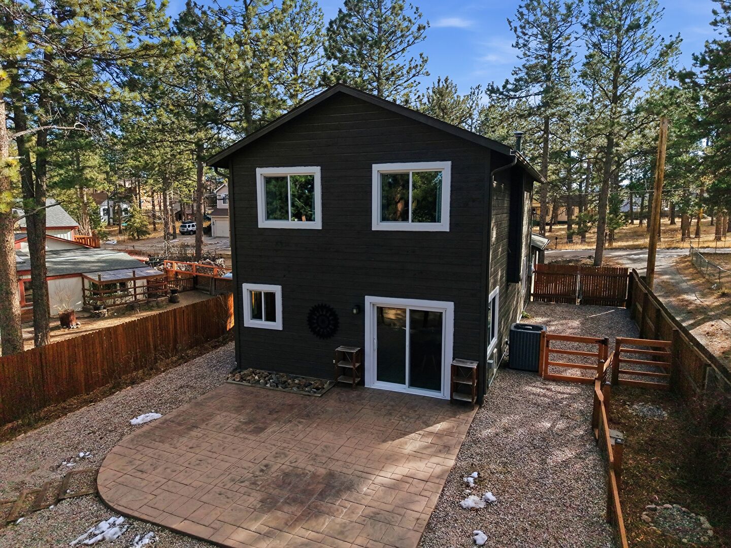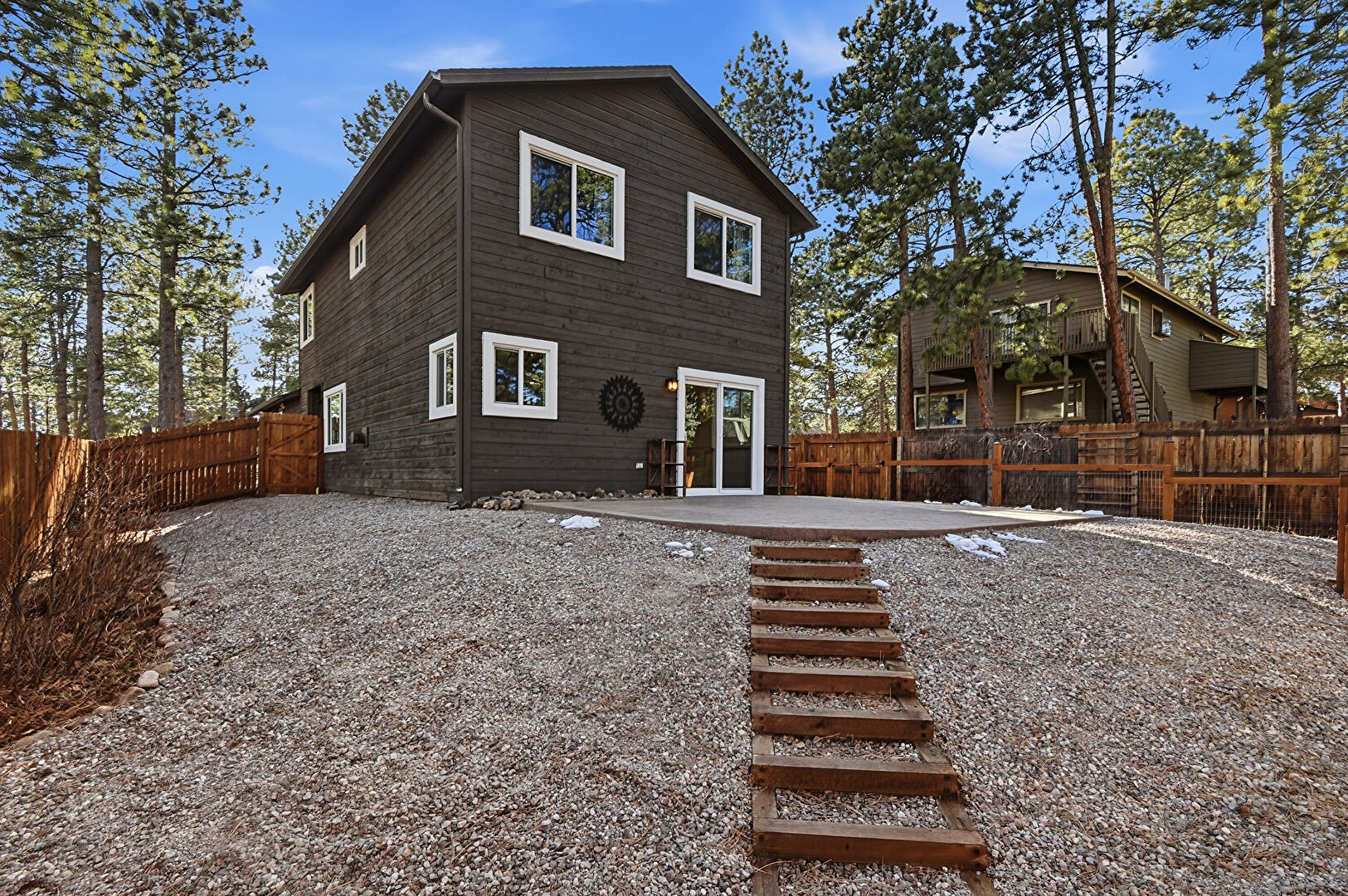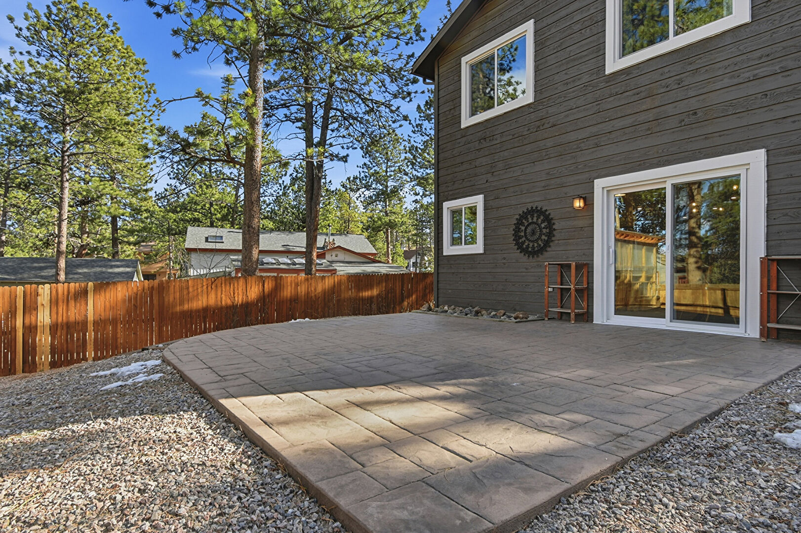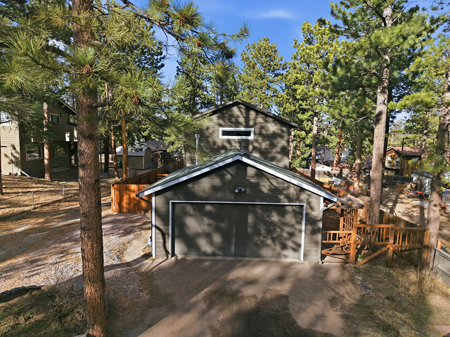 Deck, Downspout, Driveway, Fence, Garage, Gutters, Horizontal Siding, Outdoor Structure, Shingle Roof, Stone Siding, Woods View, Downspout, Driveway, Fence, Garage