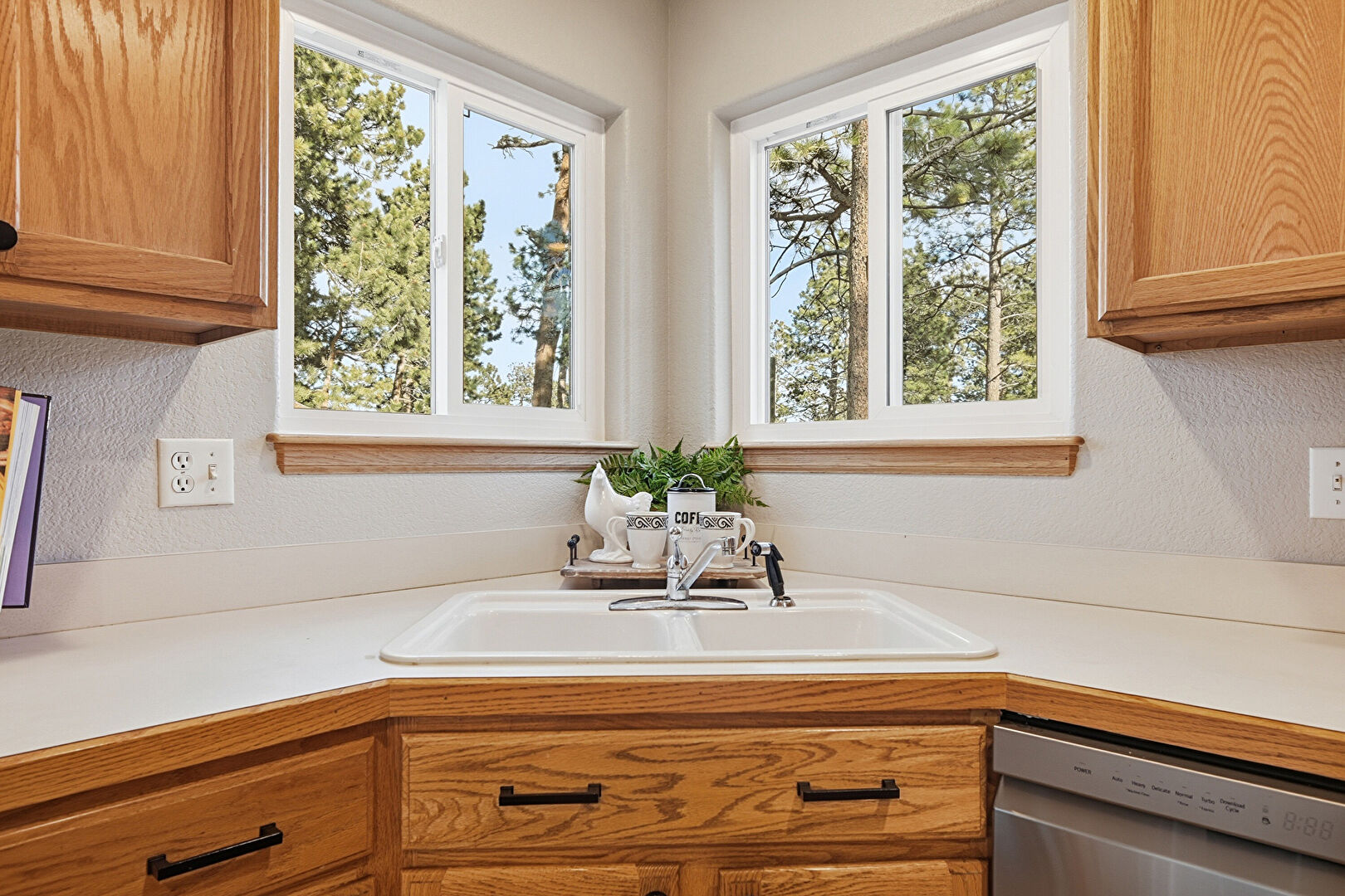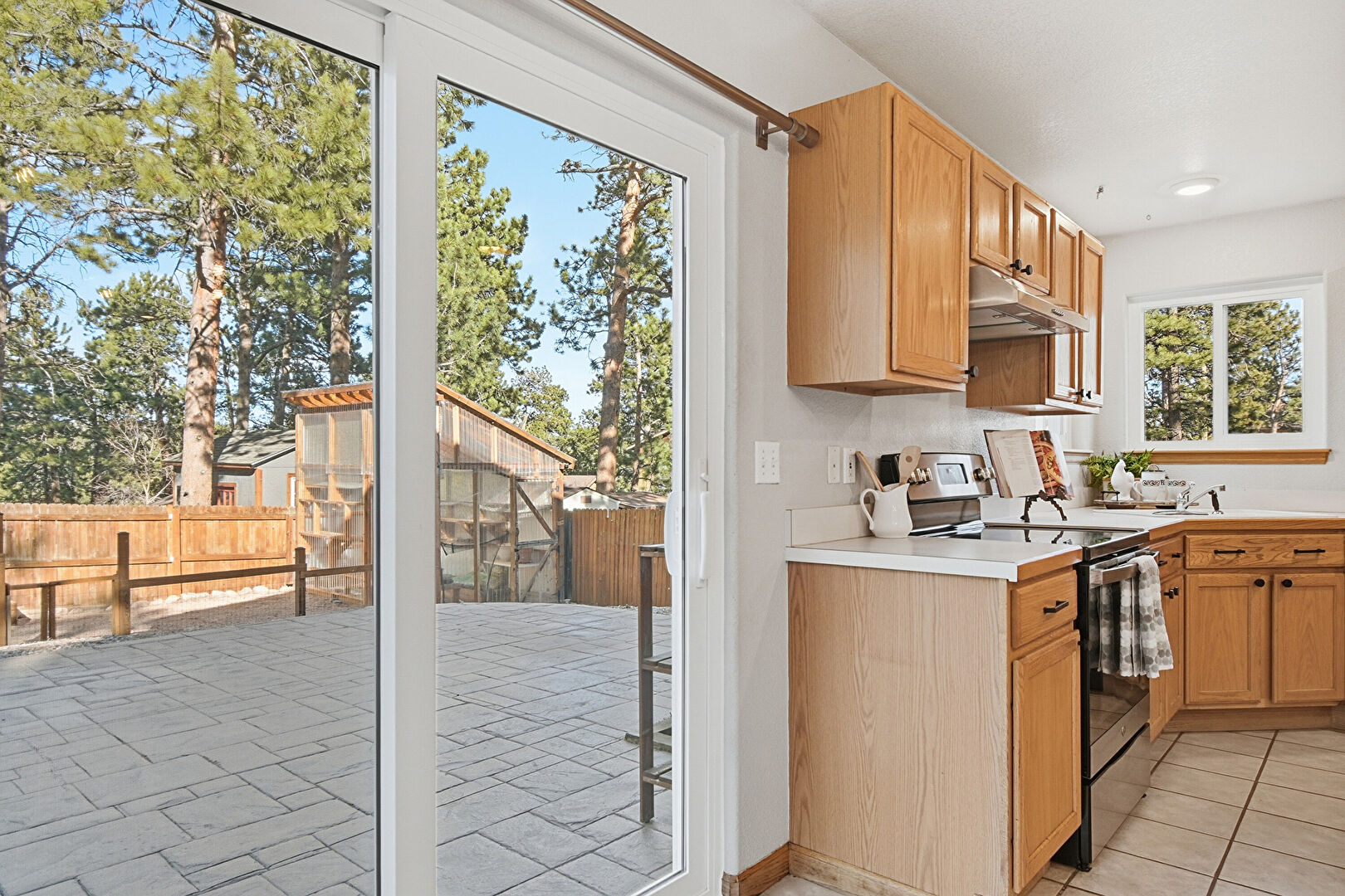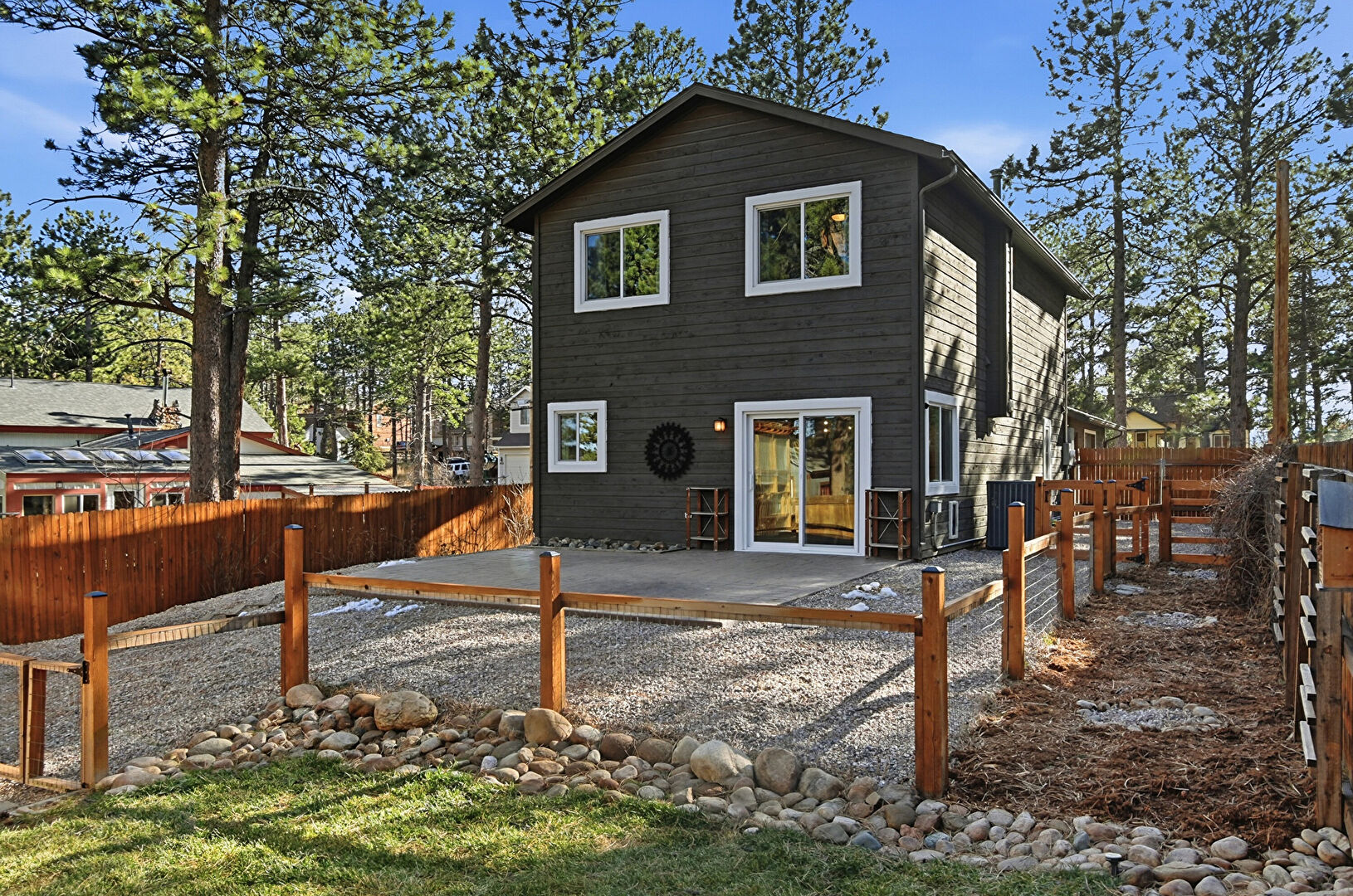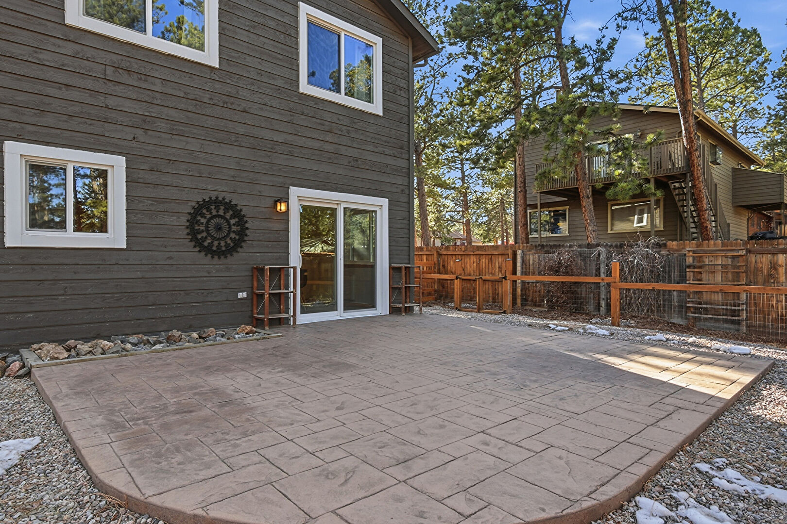 Deck, Downspout, Driveway, Fence, Garage, Gutters, Horizontal Siding, Outdoor Structure, Shingle Roof, Stone Siding, Woods View, Downspout, Driveway, Fence, Garage