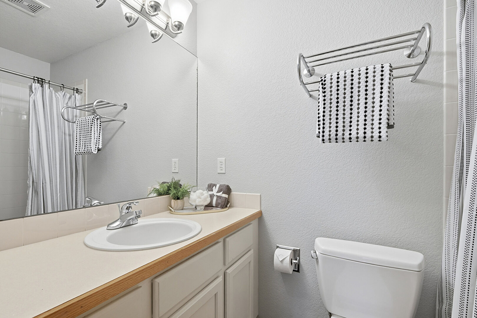 Baseboards Wall, Combined Bath Shower, Double Vanity, Drywall, Full Bathroom, Half Bathroom, Textured Wall, Tile Floor, Vent, Wall Furnace, Full Bathroom, Vanity