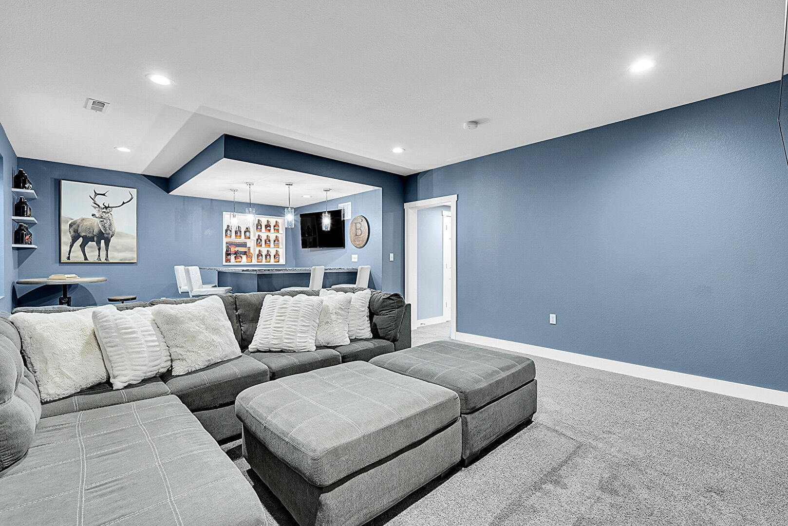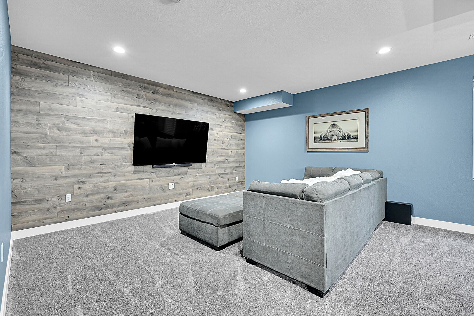 Accent Wall, Baseboards Wall, Basement, Carpet, Drywall, Indoor Bar, Natural Light, Notable Chandelier, Recessed Lighting, Smoke Carbon Monoxide Detector, Vent, Wood Wall, Baseboards Wall, Carpet, Drywall, Smoke Carbon Monoxide Detector