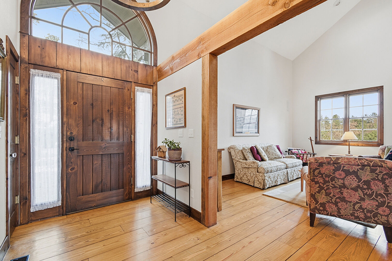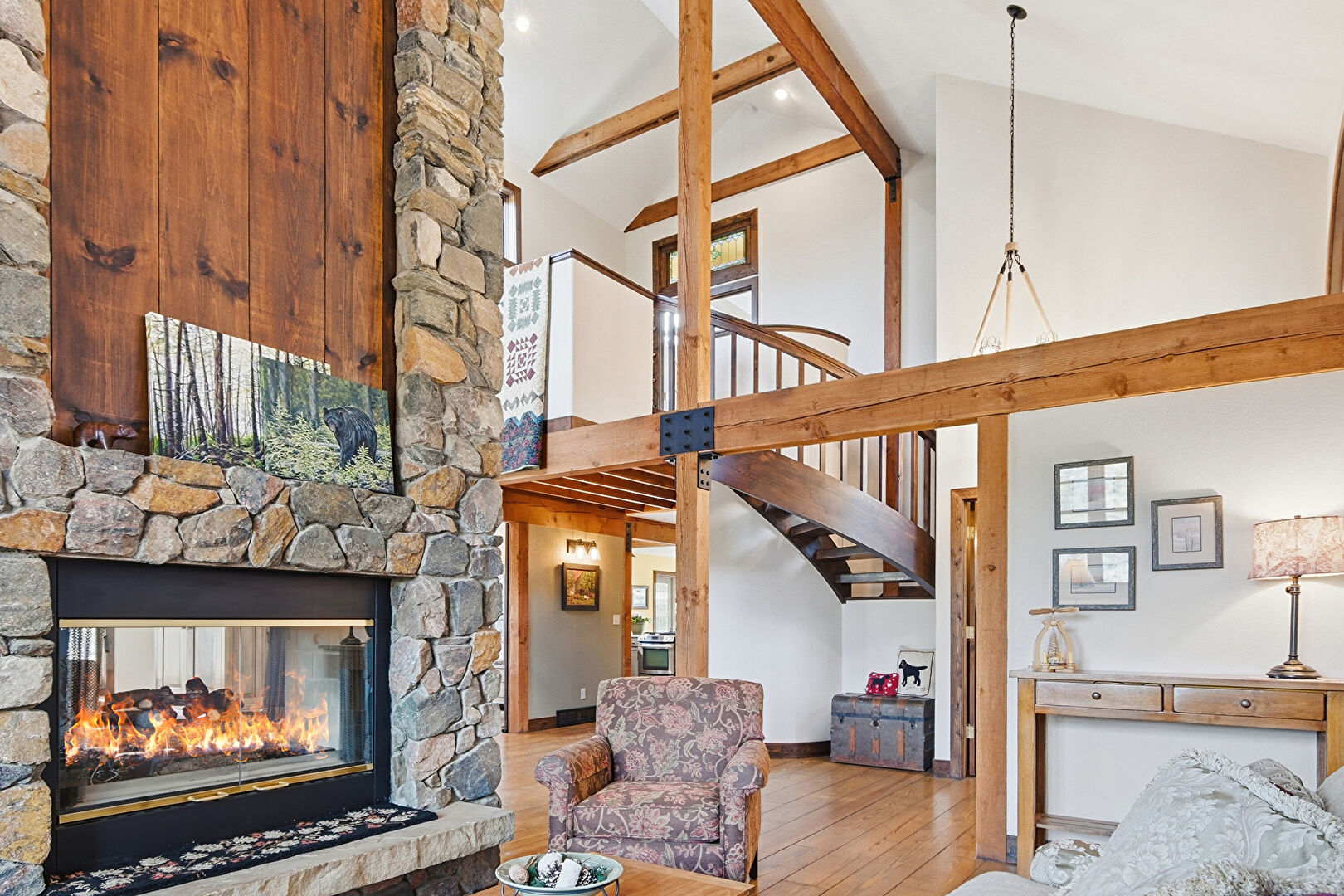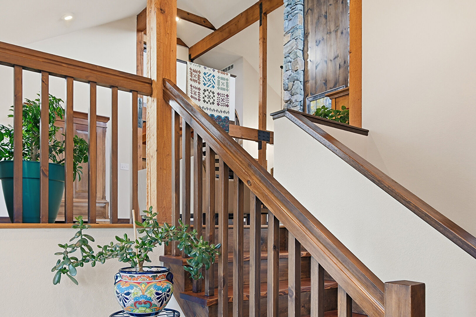 Baseboards Wall, Beamed Ceiling, Drywall, High Ceiling, Natural Light, Notable Chandelier, Smoke Carbon Monoxide Detector, Stairs, Vaulted Ceiling, Vent, Wood Ceiling, Wood Finish Floor, Wood Wall, Drywall, Notable Chandelier, Recessed Lighting
