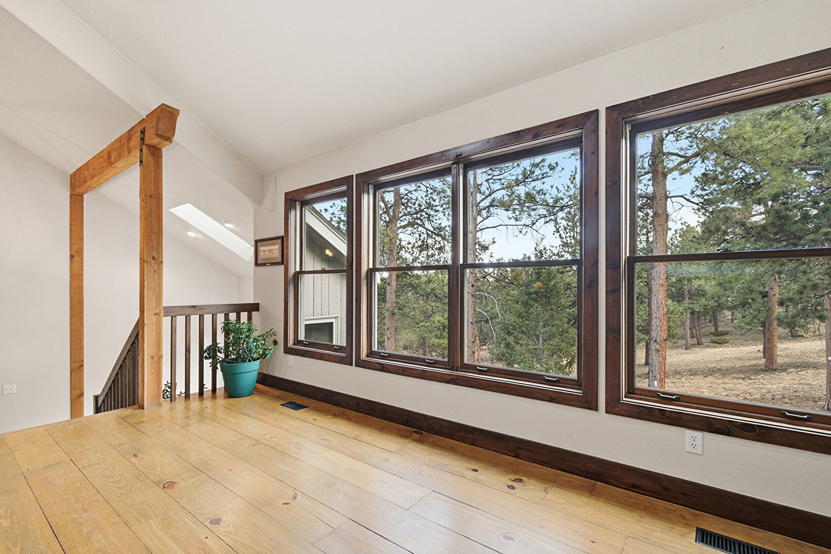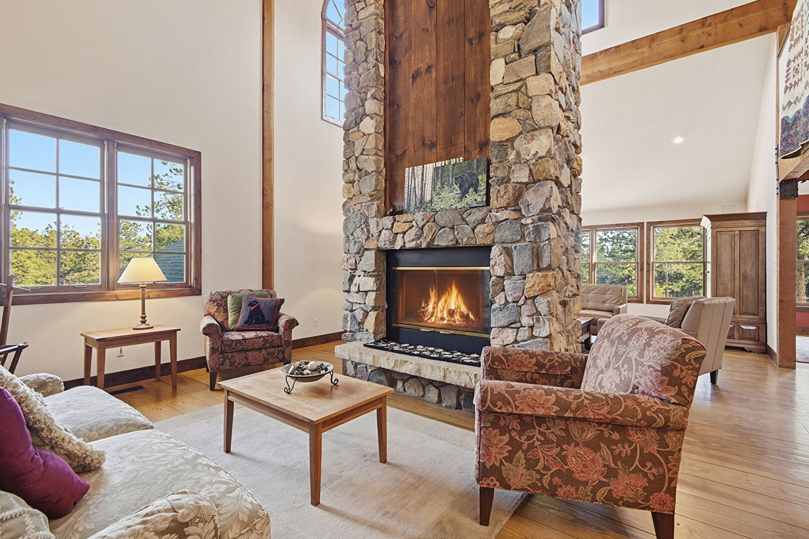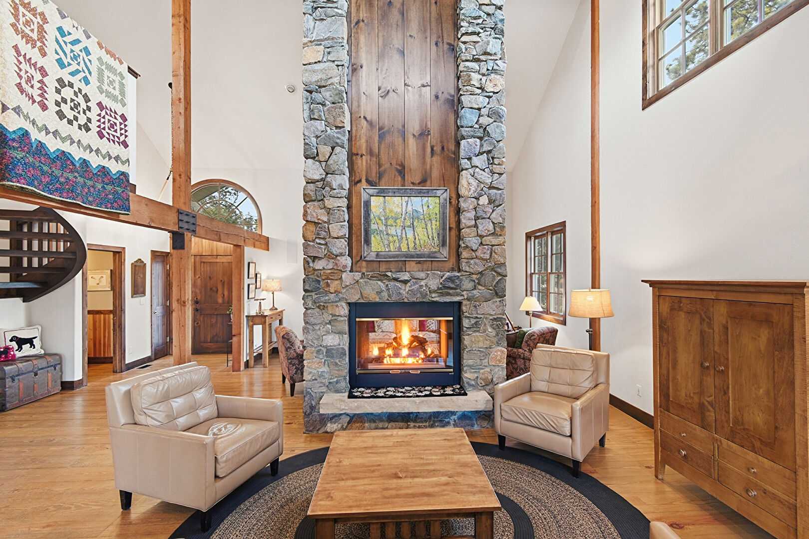 Baseboards Wall, Beamed Ceiling, Drywall, High Ceiling, Natural Light, Notable Chandelier, Smoke Carbon Monoxide Detector, Stairs, Vaulted Ceiling, Vent, Wood Ceiling, Wood Finish Floor, Wood Wall, Drywall, Notable Chandelier, Recessed Lighting
