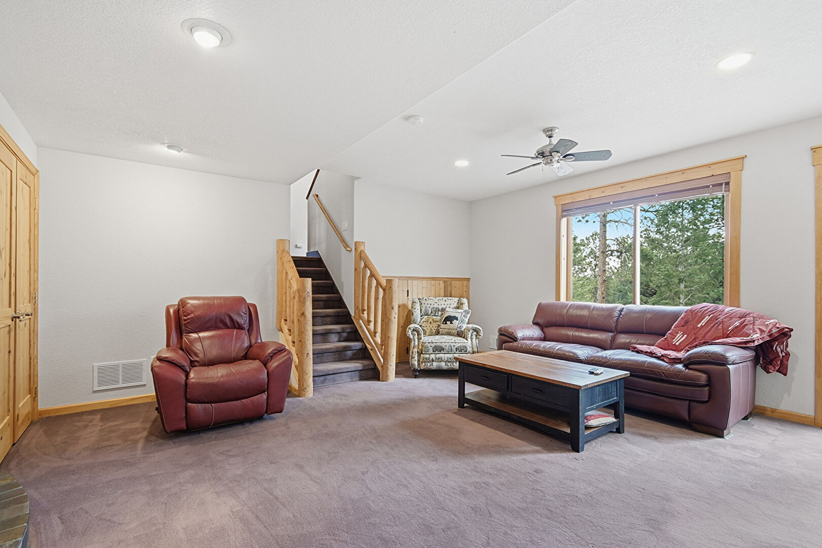 Barn Door, Baseboards Wall, Carpet, Ceiling Fan, Drywall, Fireplace, Recessed Lighting, Smoke Carbon Monoxide Detector, Stairs, Stone Finish Floor, Vent, Natural Light