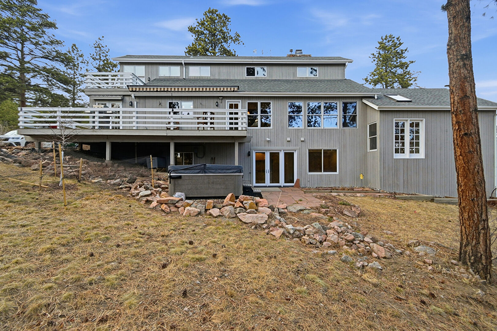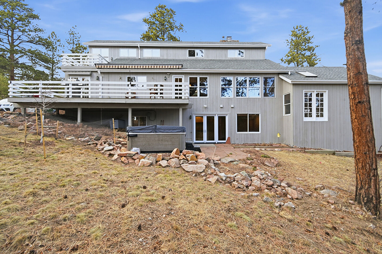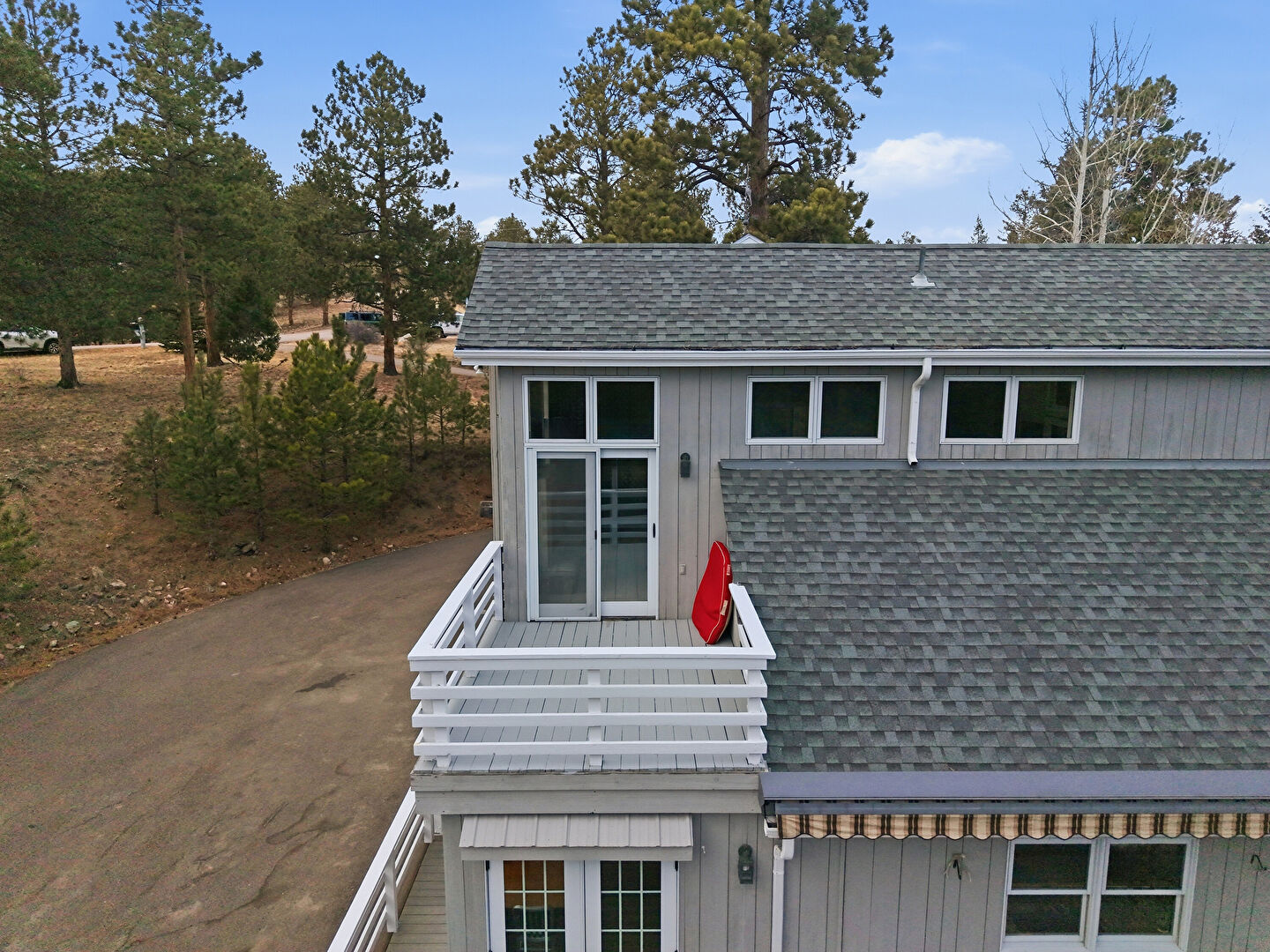 Balcony, Basement Walk Out, Built In Garage, Chimney, Deck, Downspout, Driveway, French Doors, Garage, Gutters, Hot Tub, Lawn, Pad Mount Transformer, Patio, Shingle Roof, Trampoline, Vertical Siding, Balcony, French Doors, Gutters, Shingle Roof, Vertical Siding