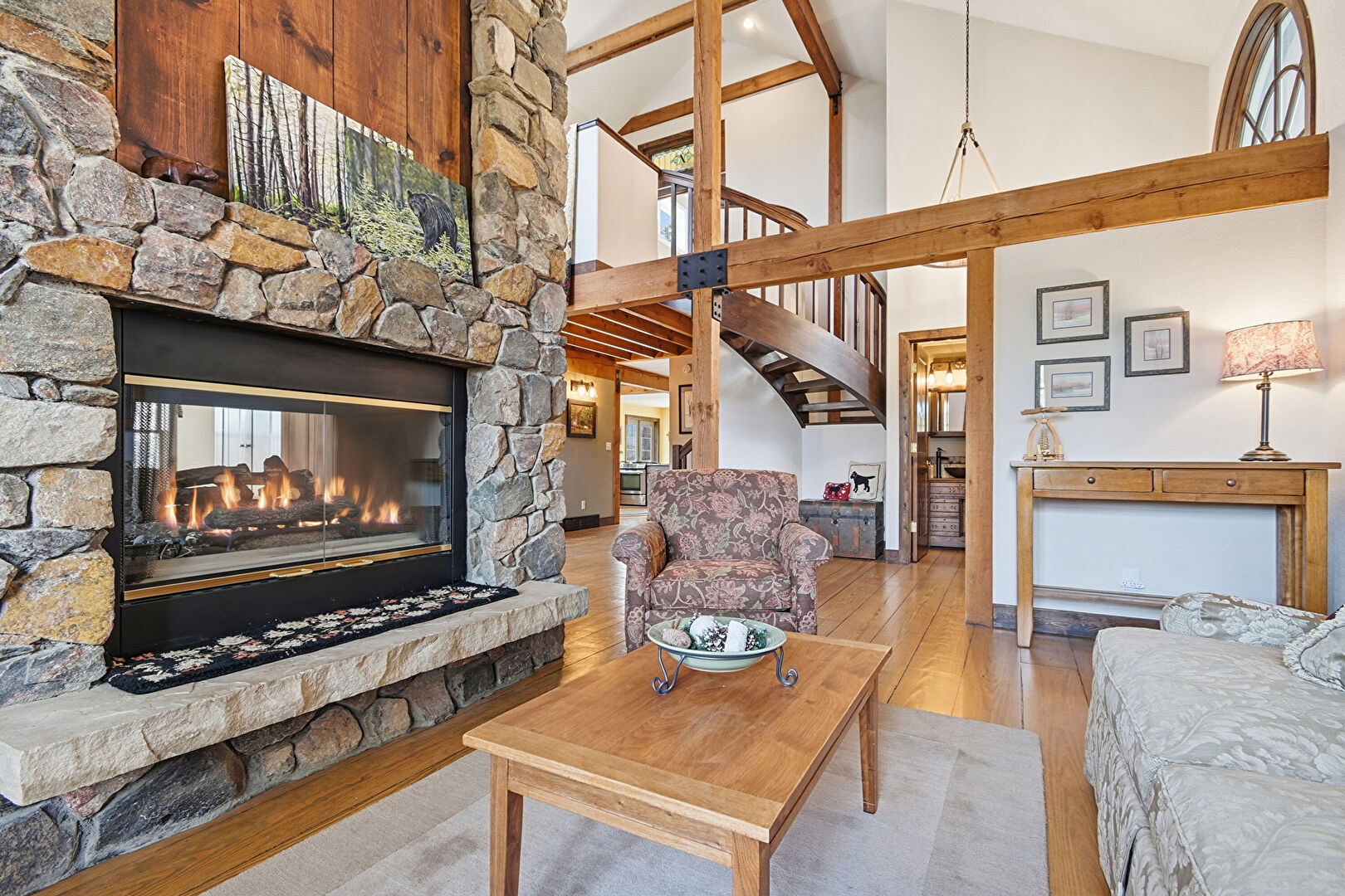 Baseboards Wall, Beamed Ceiling, Cathedral Ceiling, Decorative Columns, Drywall, Fireplace, High Ceiling, Natural Light, Notable Chandelier, Recessed Lighting, Skylight, Stairs, Vaulted Ceiling, Vent, Wood Finish Floor, Baseboards Wall, Beamed Ceiling, Drywall, Fireplace, High Ceiling, Natural Light, Wood Finish Floor