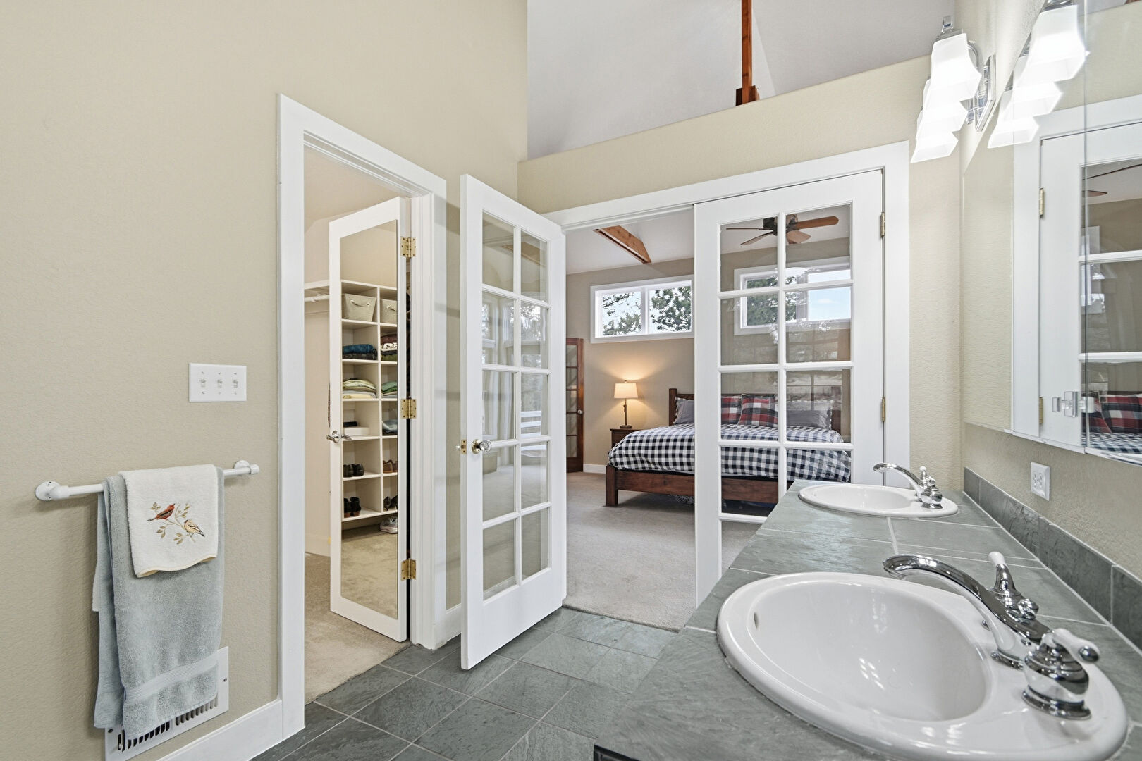 Baseboards Wall, Carpet, Ceiling Fan, Combined Bath Shower, Double Vanity, Drywall, Ensuite Bathroom, French Doors, Full Bathroom, Half Bathroom, Natural Light, Textured Wall, Vanity, Vent, Wainscot Wall, Walk In Closet, Wood Wall, Drywall, Full Bathroom, Textured Wall, Tile Floor, Vanity