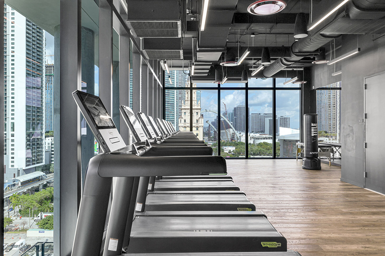 Baseboards Wall, City View, Drywall, Floor Ceiling Windows, Laundry, Natural Light, Recessed Lighting, Vent, Wood Finish Floor