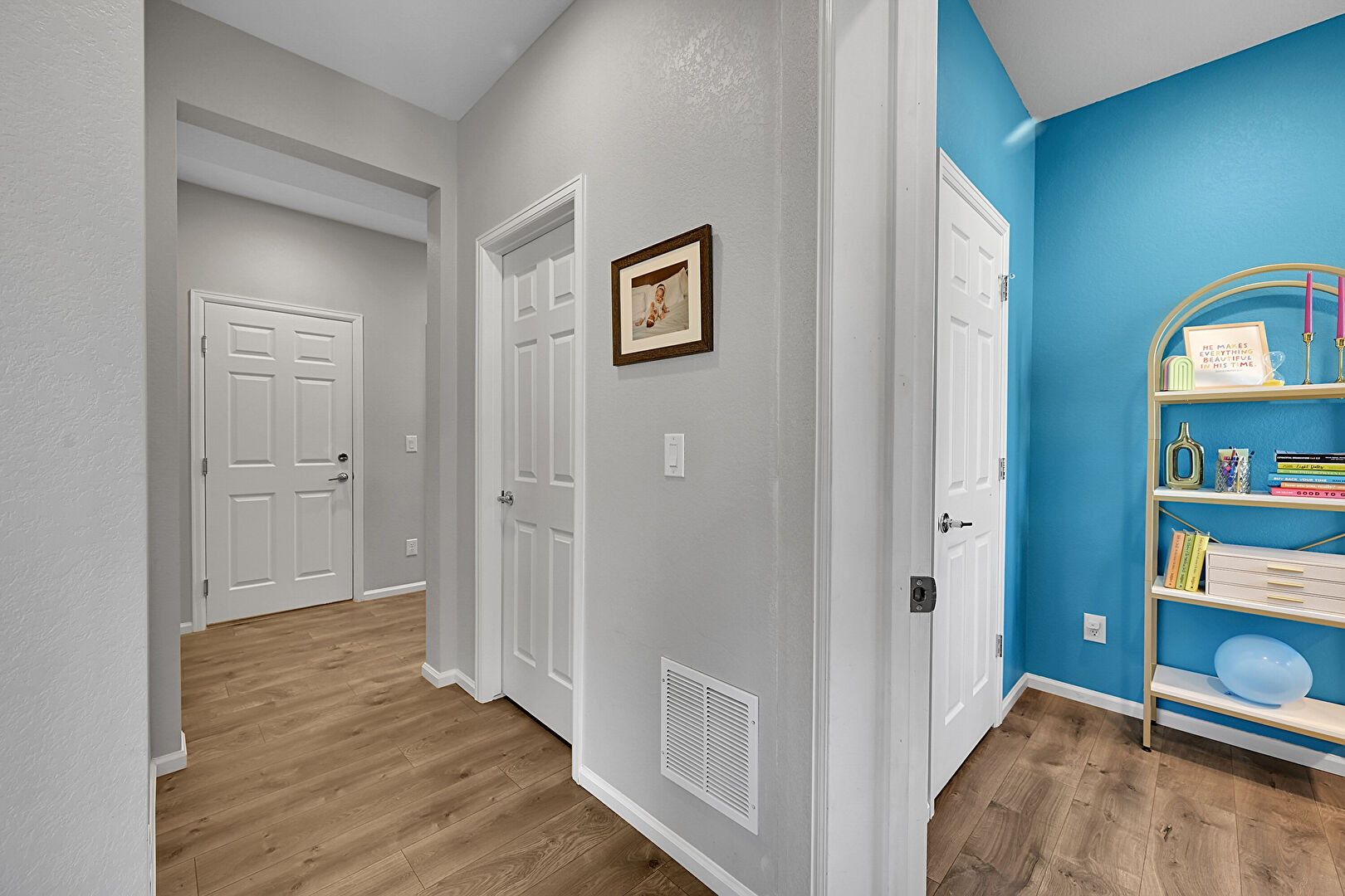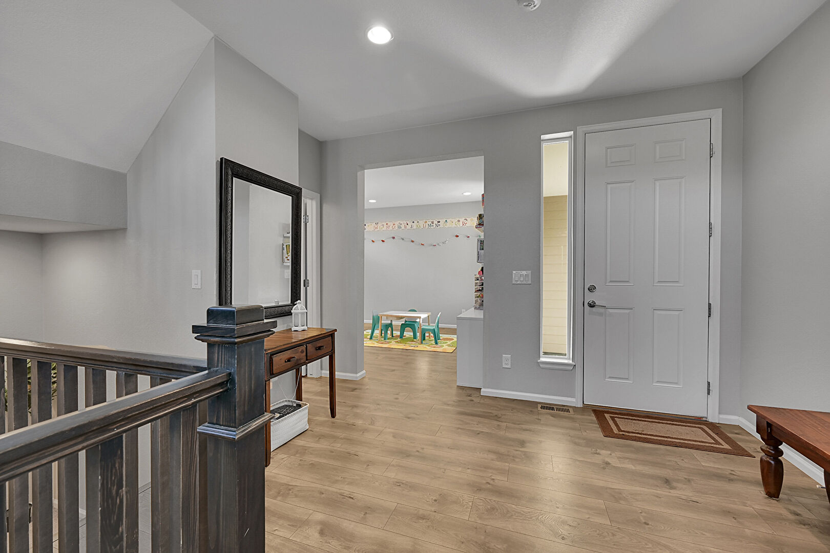 Baseboards Wall, Carpet, Drywall, Natural Light, Recessed Lighting, Textured Wall, Upstairs Landing, Vent, Wood Finish Floor, Natural Light, Smoke Carbon Monoxide Detector, Upstairs Landing, Vent, Vinyl Floor