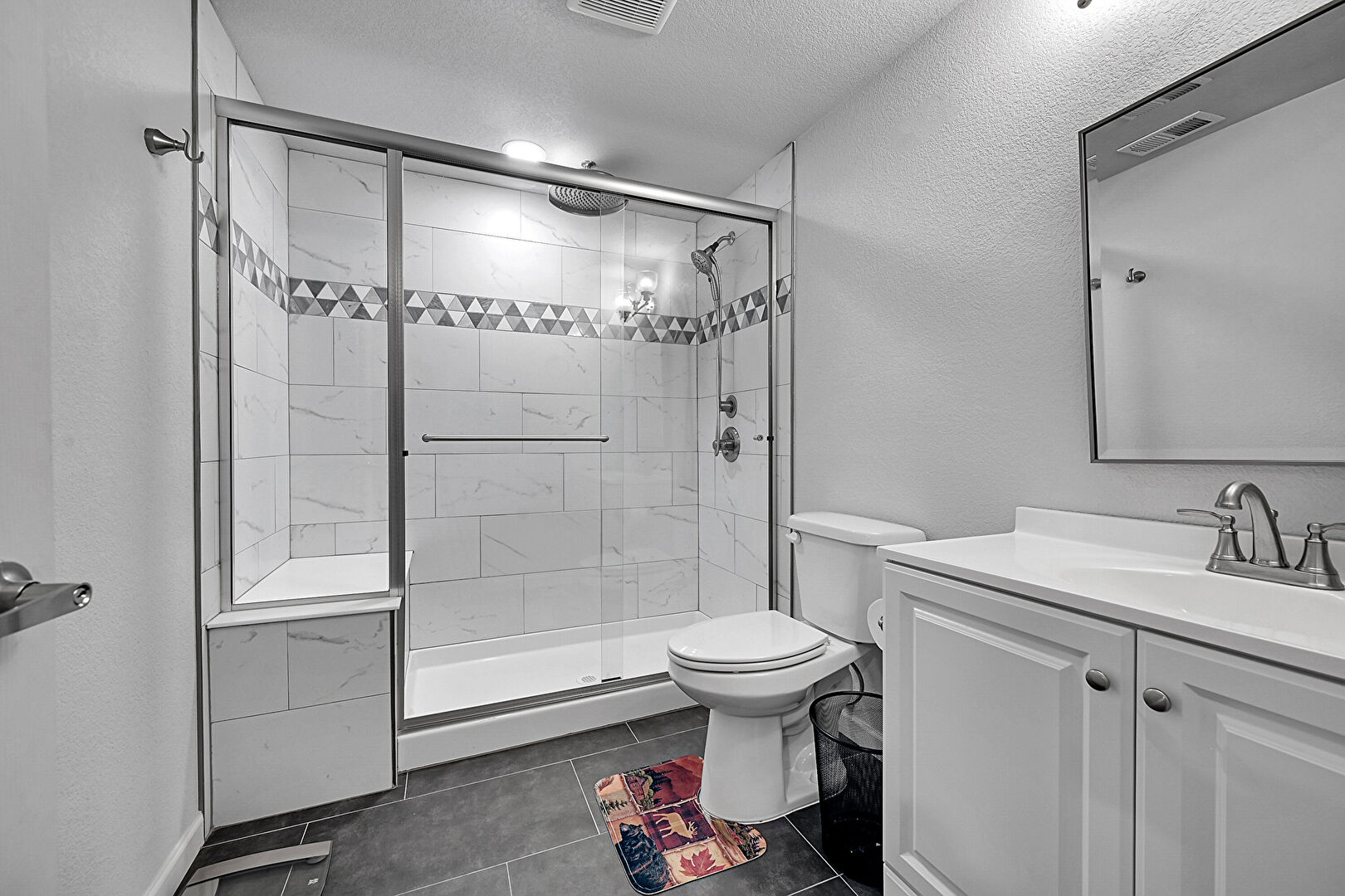 Baseboards Wall, Carpet, Combined Bath Shower, Drywall, Full Bathroom, Recessed Lighting, Textured Wall, Tile Floor, Vanity, Vent, Vinyl Floor, Baseboards Wall, Drywall, Ensuite Bathroom, Full Bathroom, Textured Ceiling